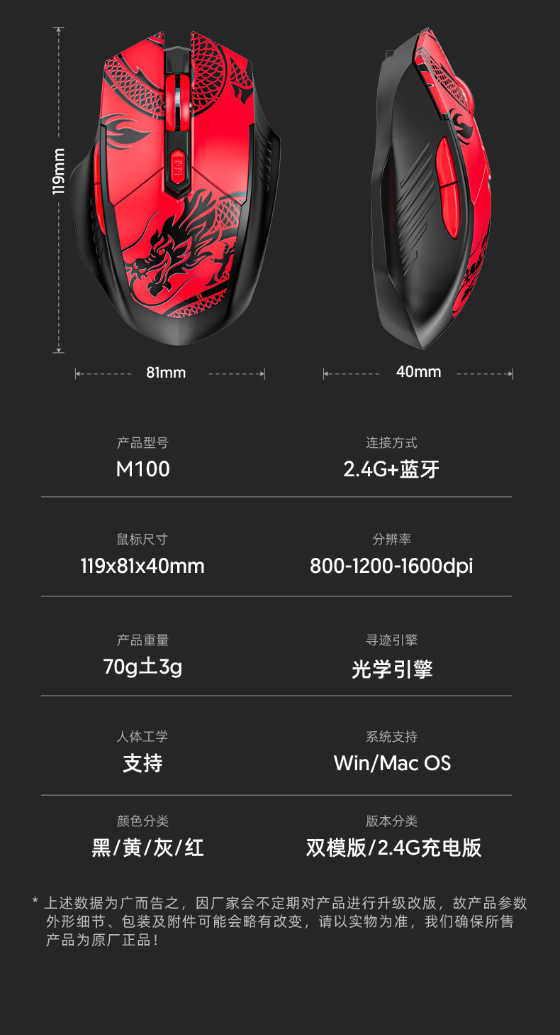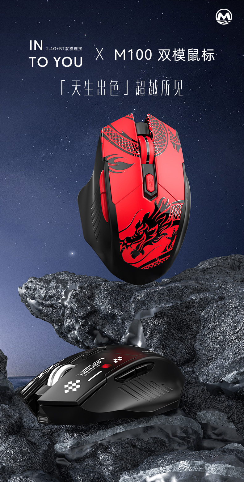 M100 무선 마우스 블루투스 듀얼 모드 음소거 충전 게임 전자 스포츠 사무실 노트북 데스크탑 마우스 국경