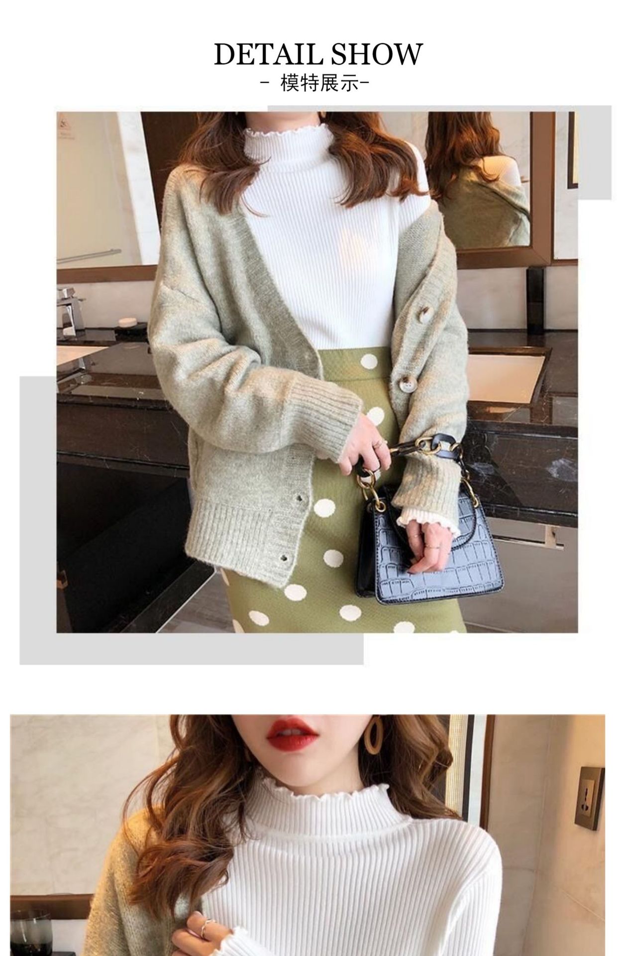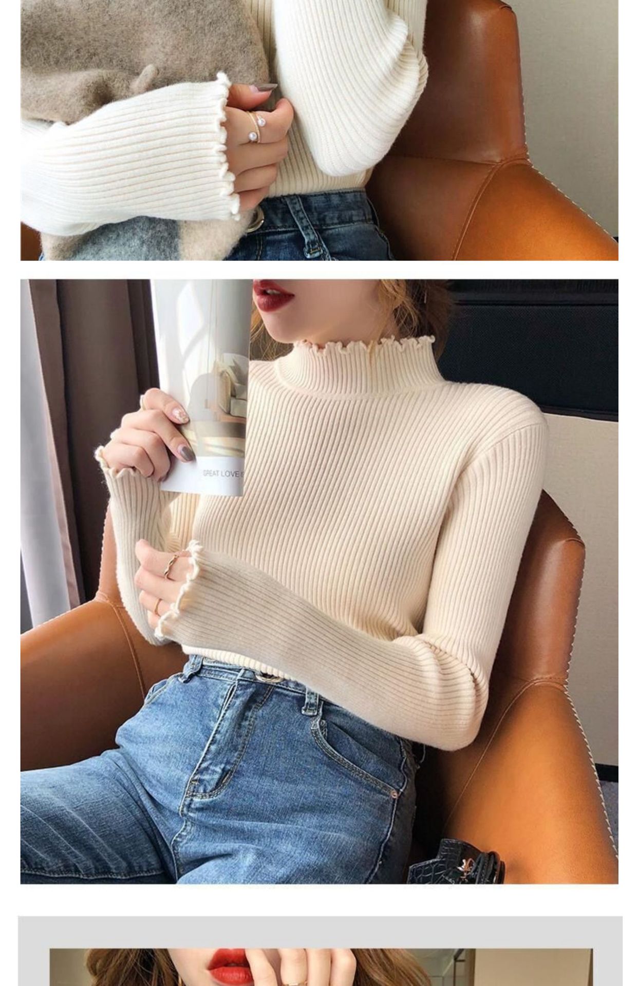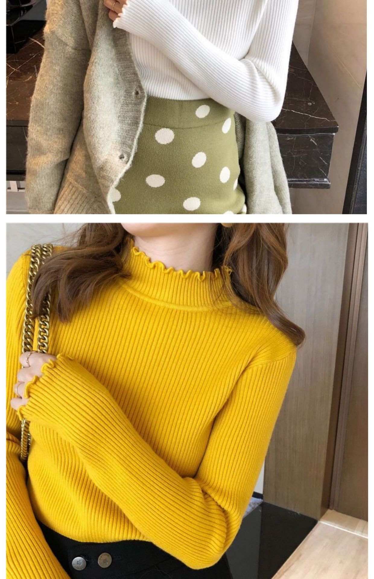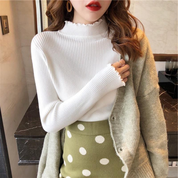 2023秋季毛衣女内搭修身黑色半高领木耳边长袖百搭薄款针织打底衫
