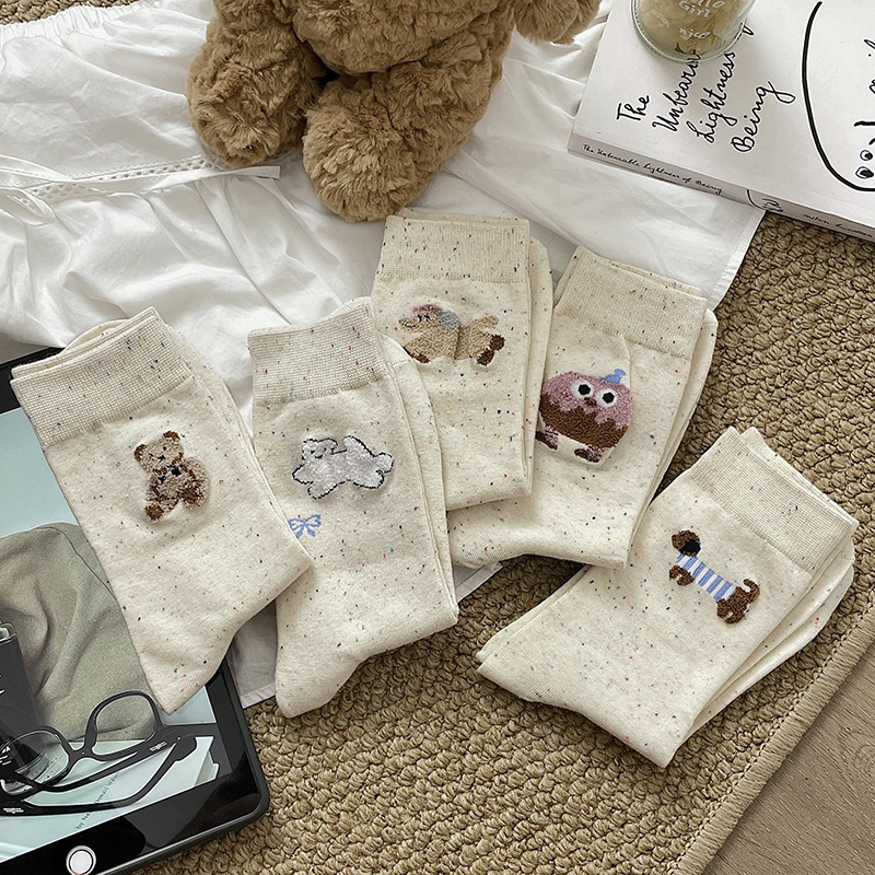 가을과 겨울 여성 양말 포인트 원사 만화 귀여운 봉제 작은 동물 튜브 양말 학술 스타일 면 양말 한국 더미 양말스토어 가기