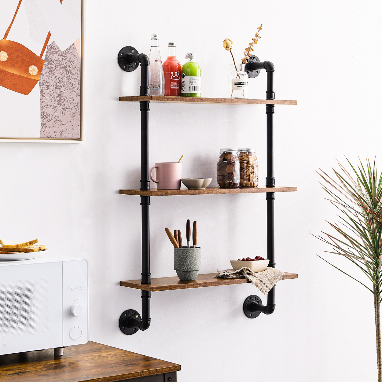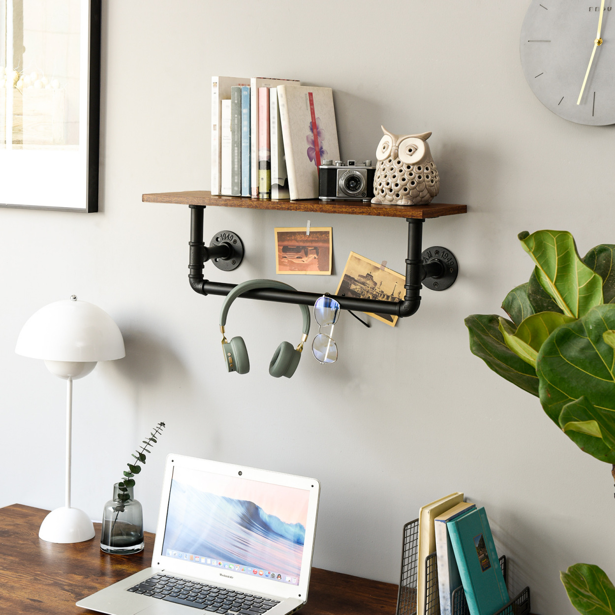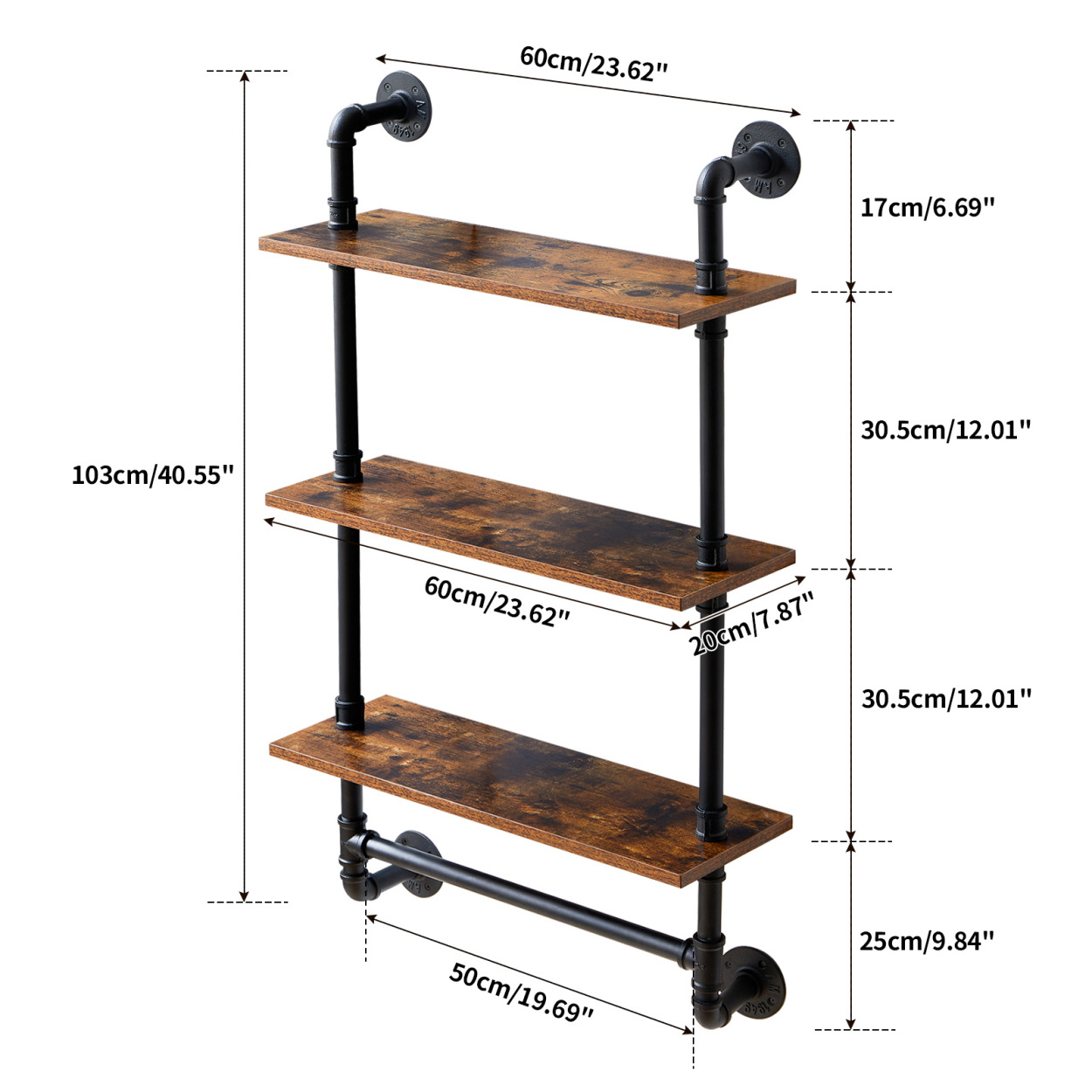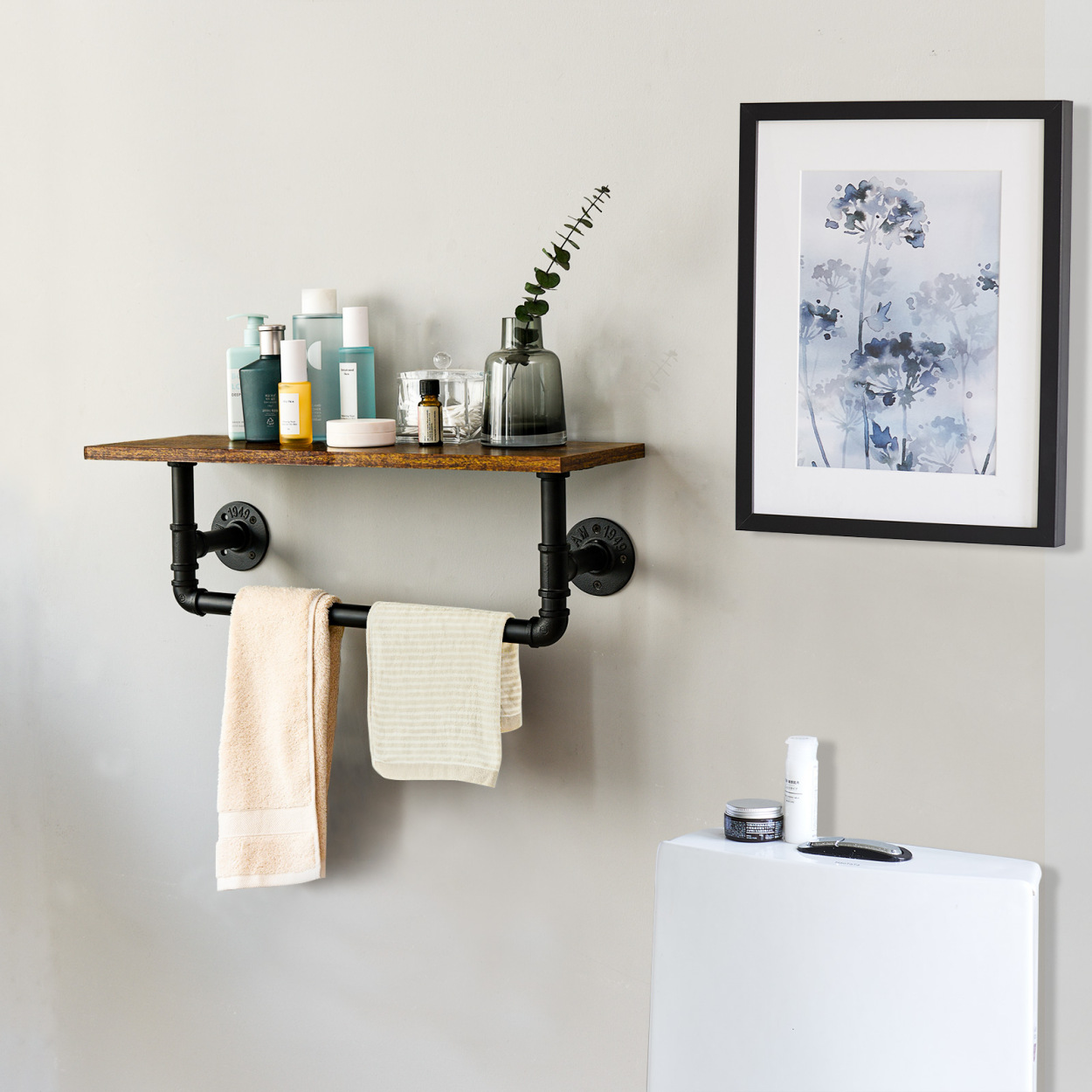 미국 스타일 연철 산업용 파이프 욕실 랙 국가 책장 보관 랙 벽 장착 국가 나무 랙 거실 장식 랙스토어 가기