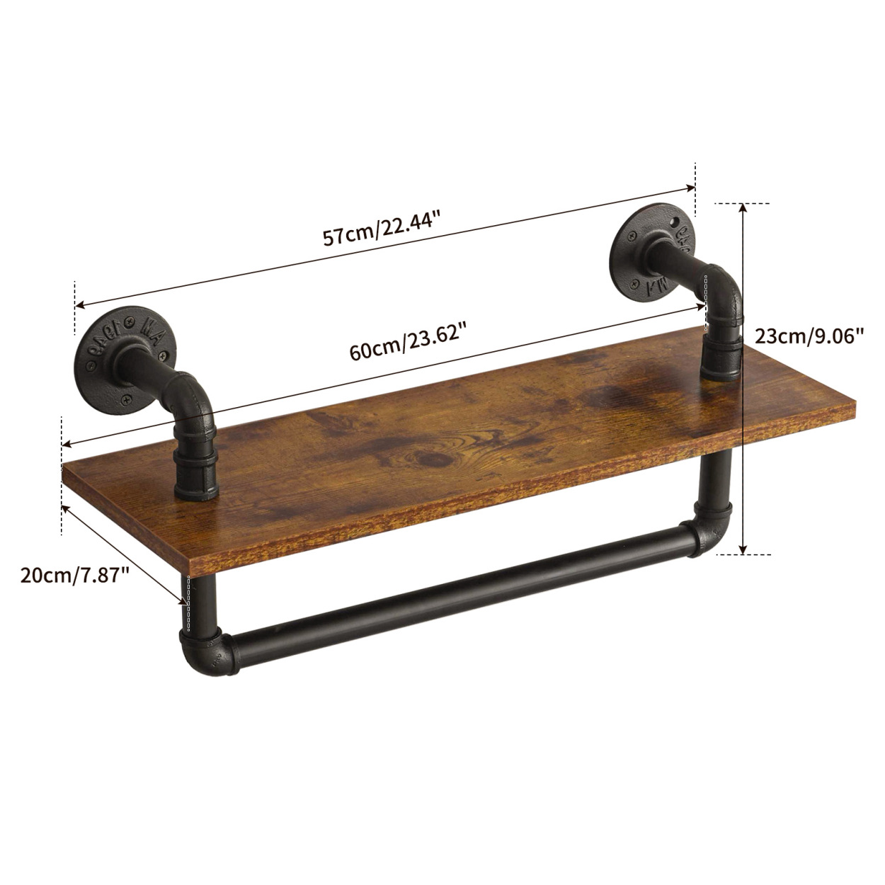 미국 스타일 연철 산업용 파이프 욕실 랙 국가 책장 보관 랙 벽 장착 국가 나무 랙 거실 장식 랙