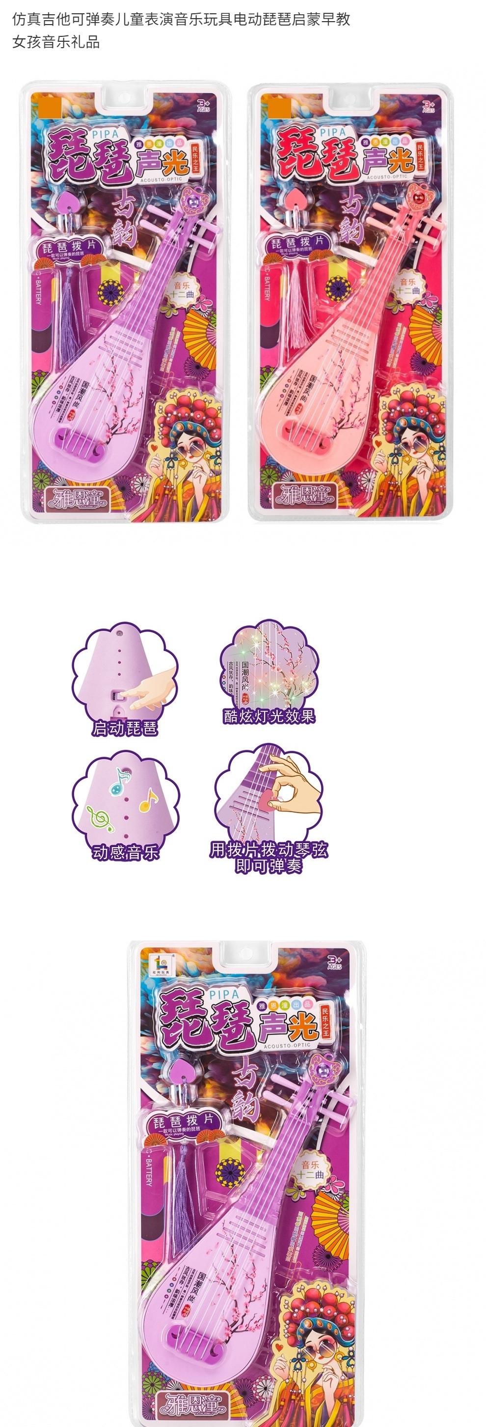 Pipa 악기 어린이 소리와 가벼운 밴드 픽은 음악을 재생할 수 있습니다 작은 장난감 소녀 기타 바이올린 초보자