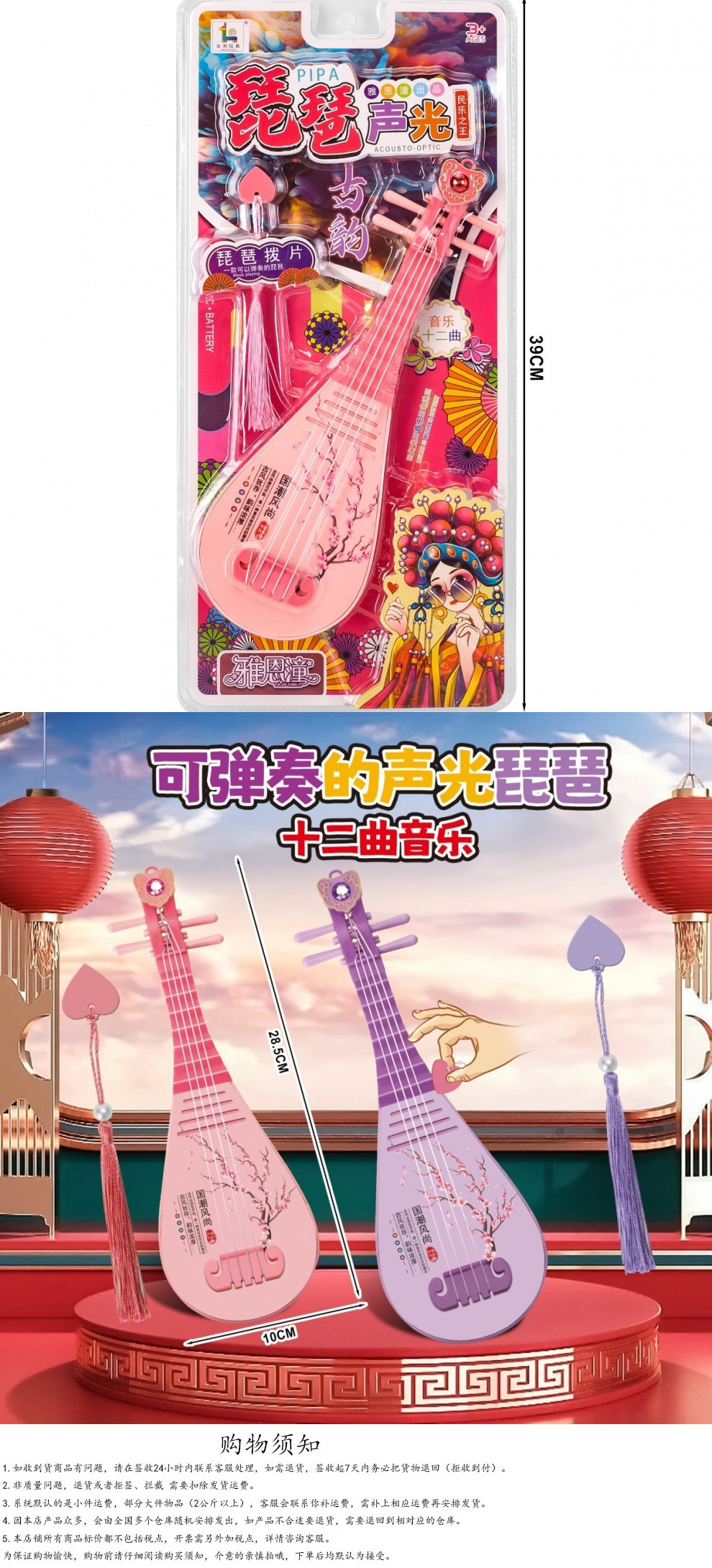 Pipa 악기 어린이 소리와 가벼운 밴드 픽은 음악을 재생할 수 있습니다 작은 장난감 소녀 기타 바이올린 초보자스토어 가기