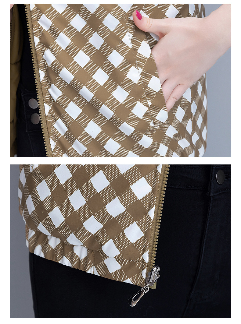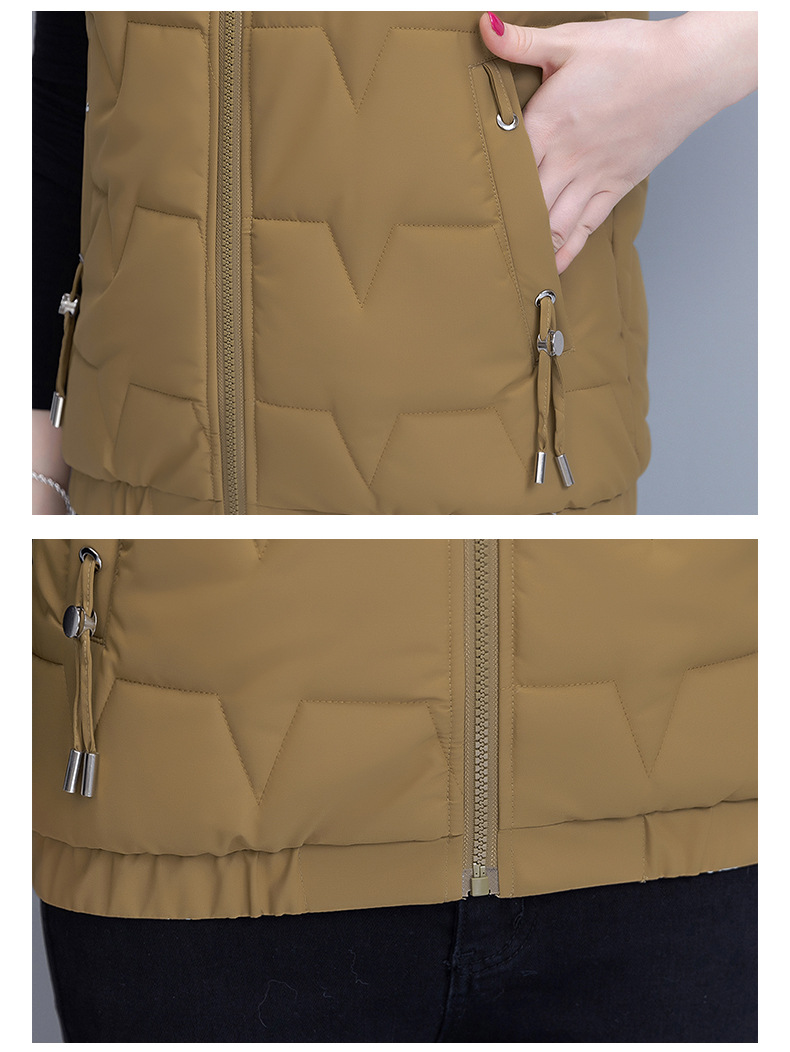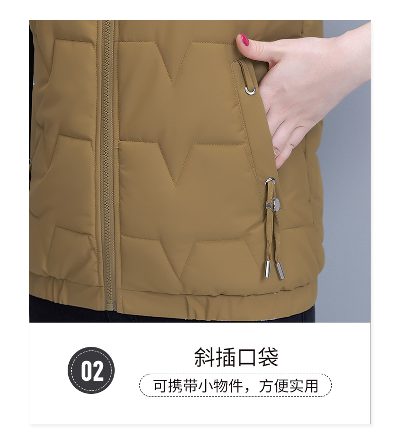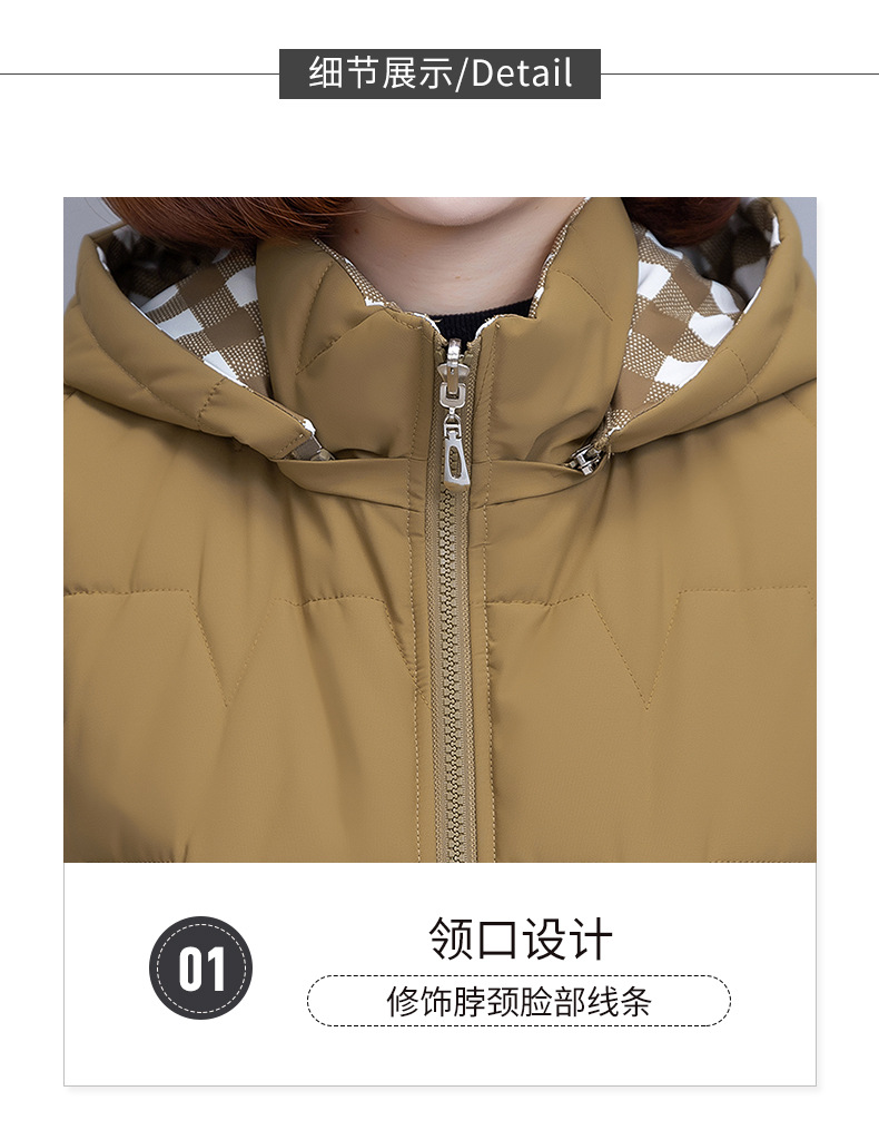중년 어머니의 양면 후드 탈착식 면복 조끼 여성용 가을과 겨울 새로운 외국 스타일 대비 컬러 지퍼 카디건 코트