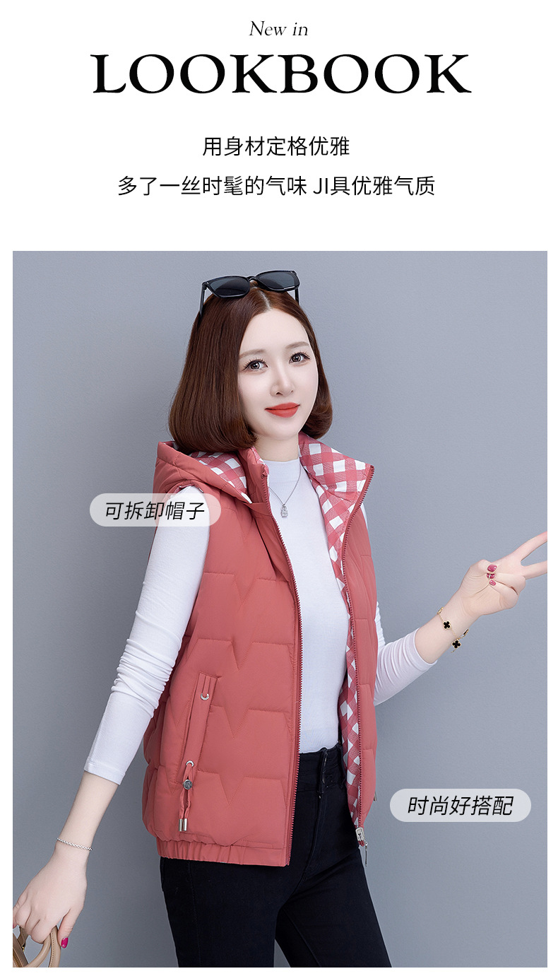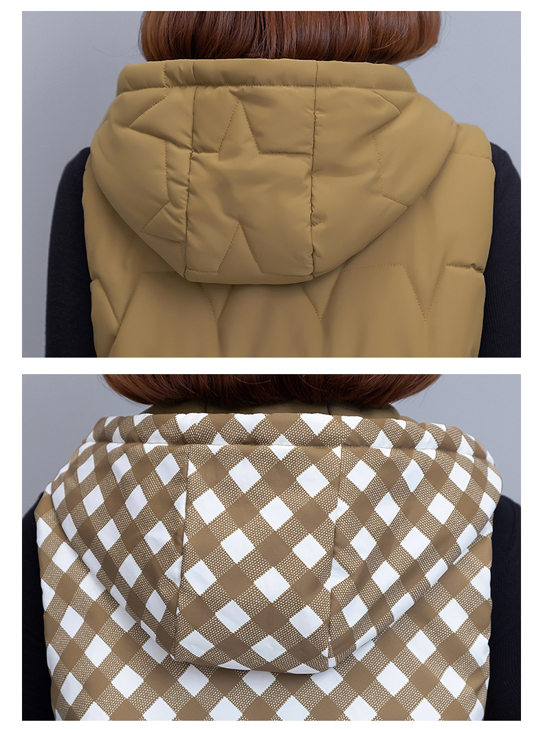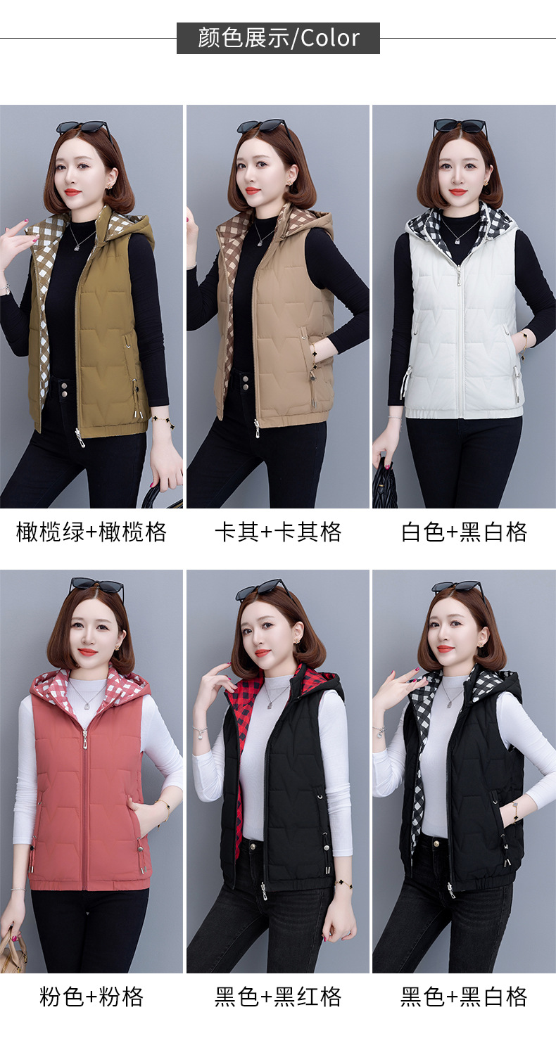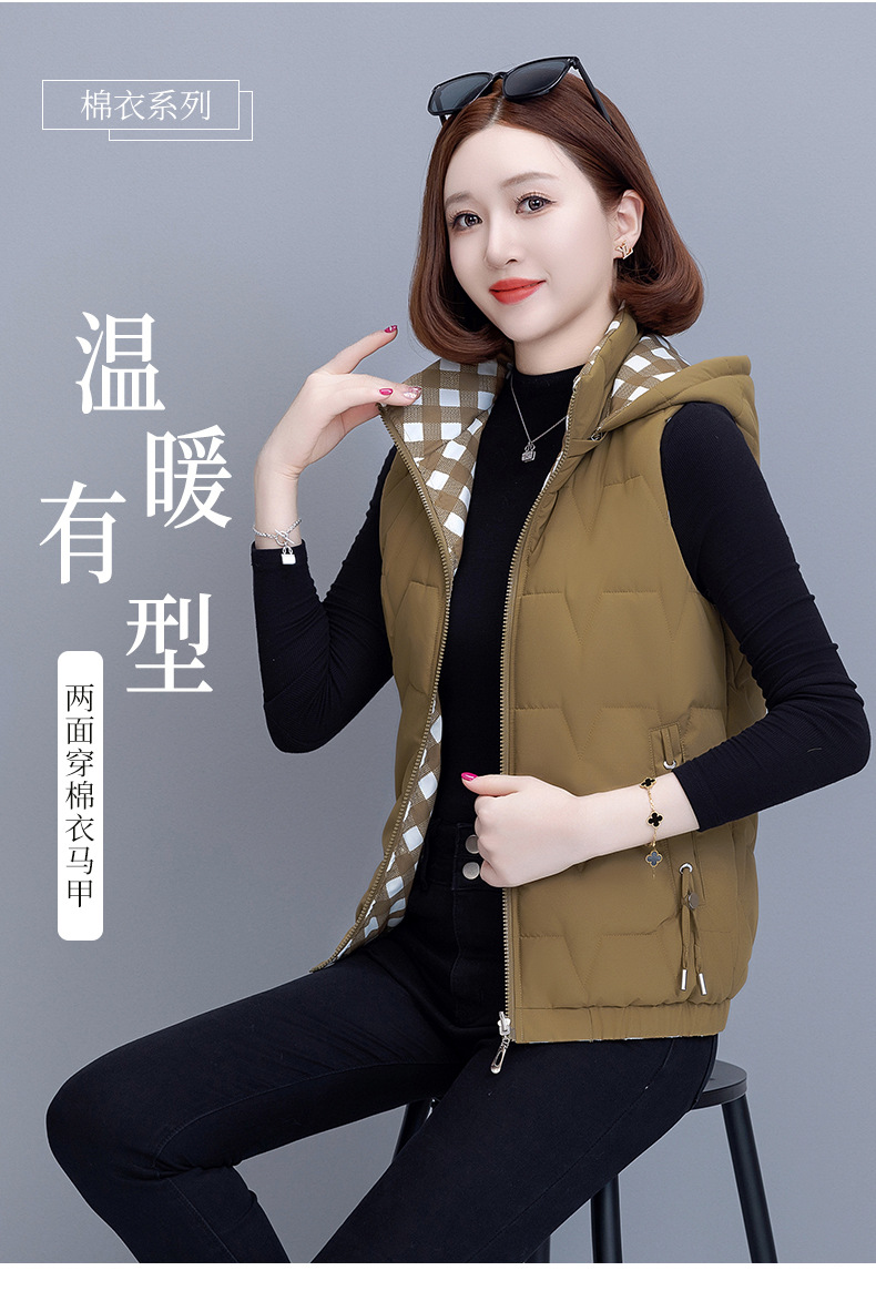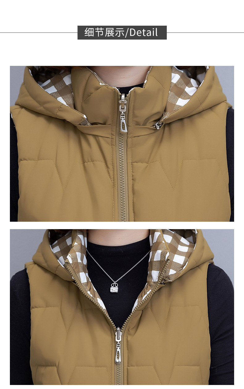중년 어머니의 양면 후드 탈착식 면복 조끼 여성용 가을과 겨울 새로운 외국 스타일 대비 컬러 지퍼 카디건 코트스토어 가기