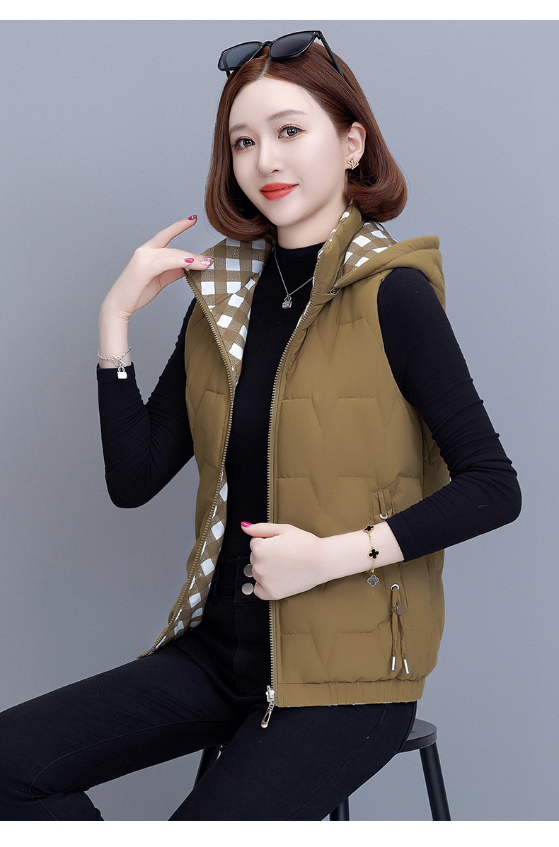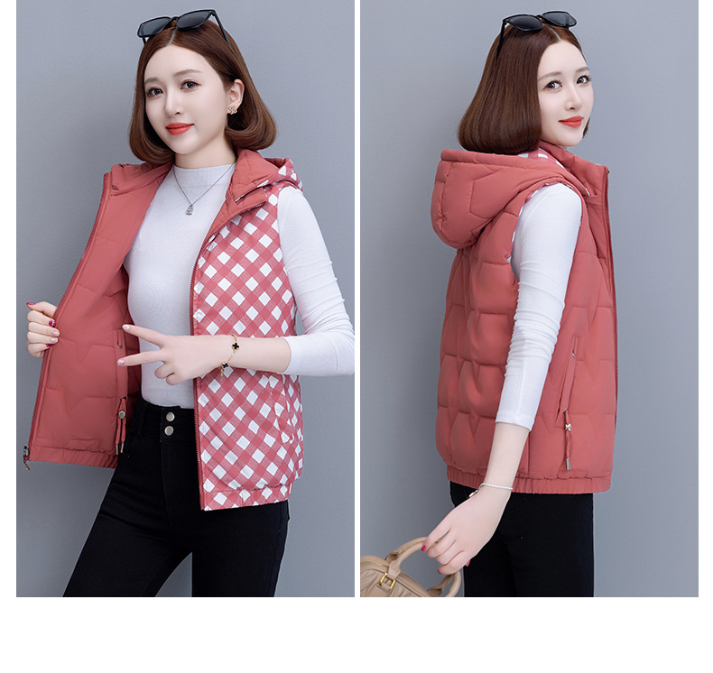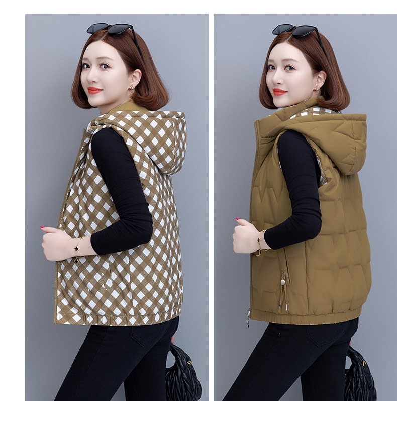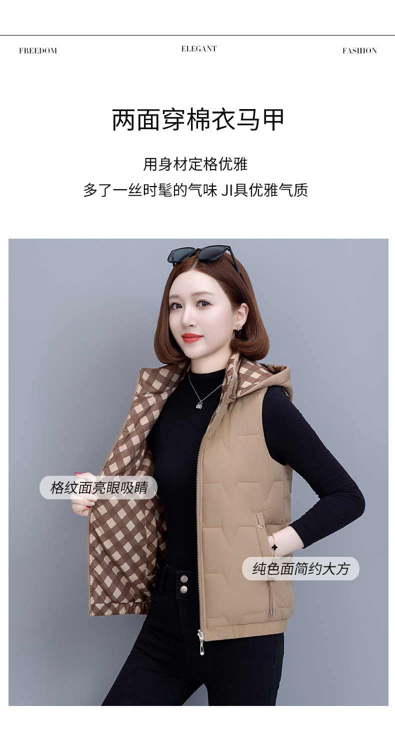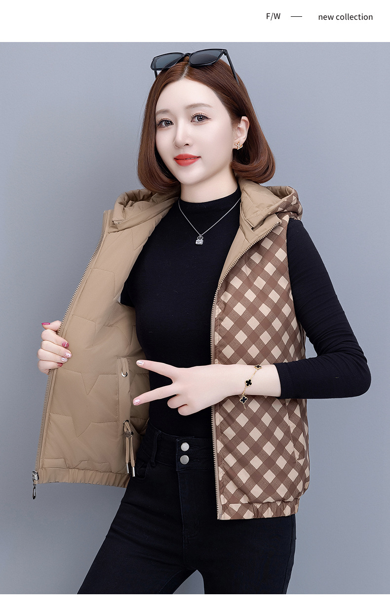 중년 어머니의 양면 후드 탈착식 면복 조끼 여성용 가을과 겨울 새로운 외국 스타일 대비 컬러 지퍼 카디건 코트스토어 가기