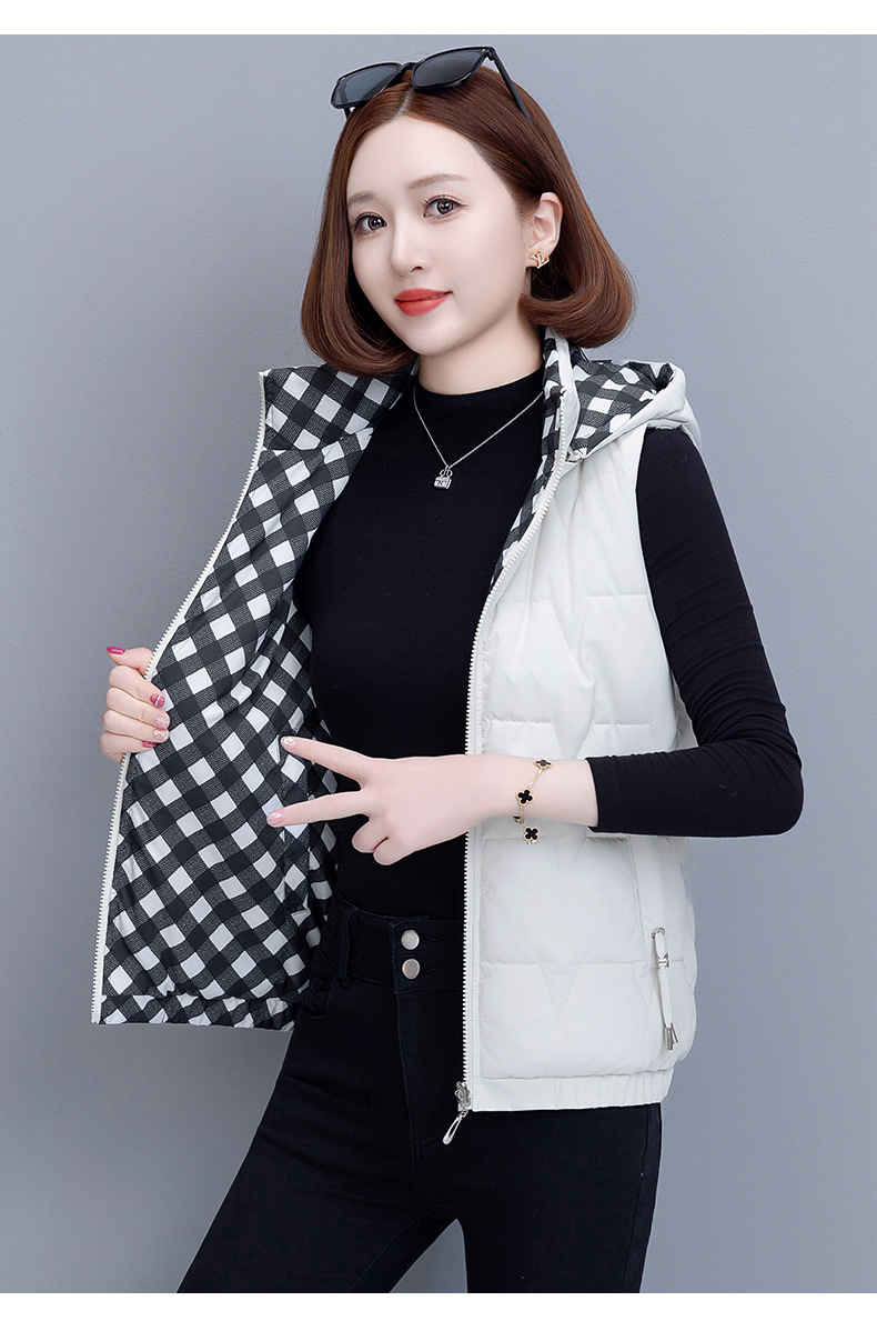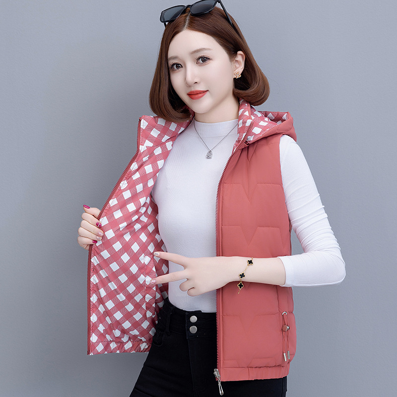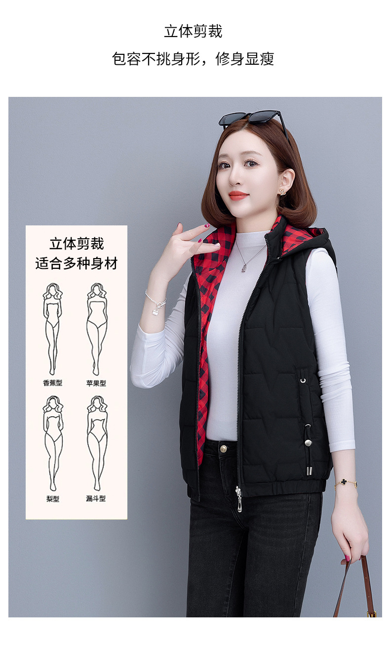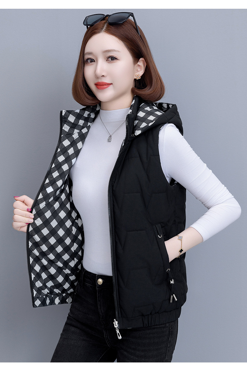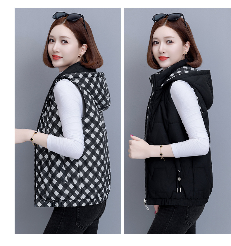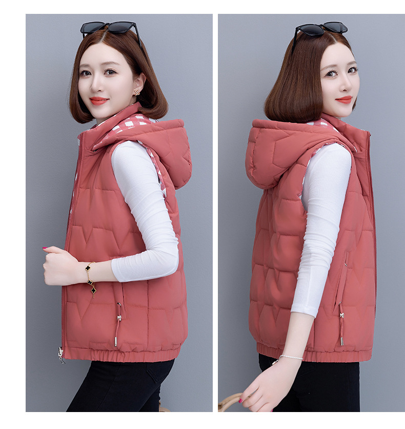 중년 어머니의 양면 후드 탈착식 면복 조끼 여성용 가을과 겨울 새로운 외국 스타일 대비 컬러 지퍼 카디건 코트스토어 가기