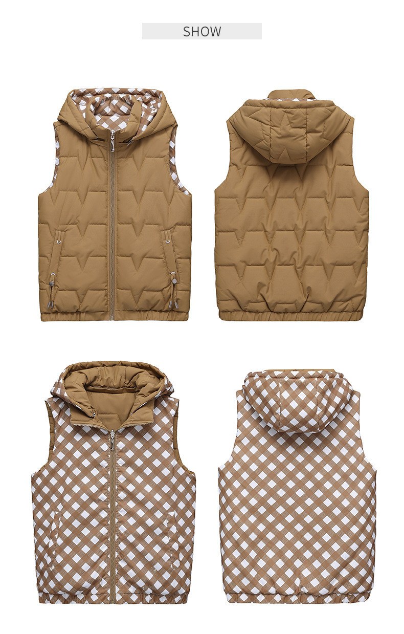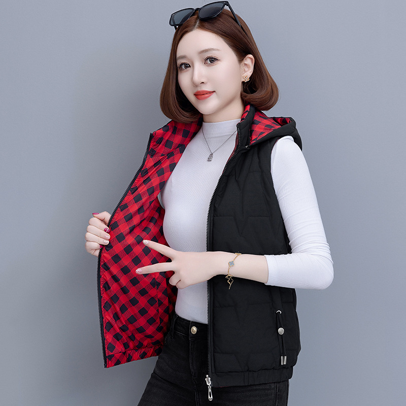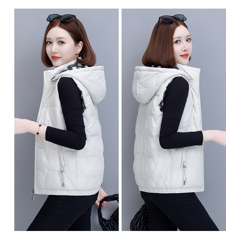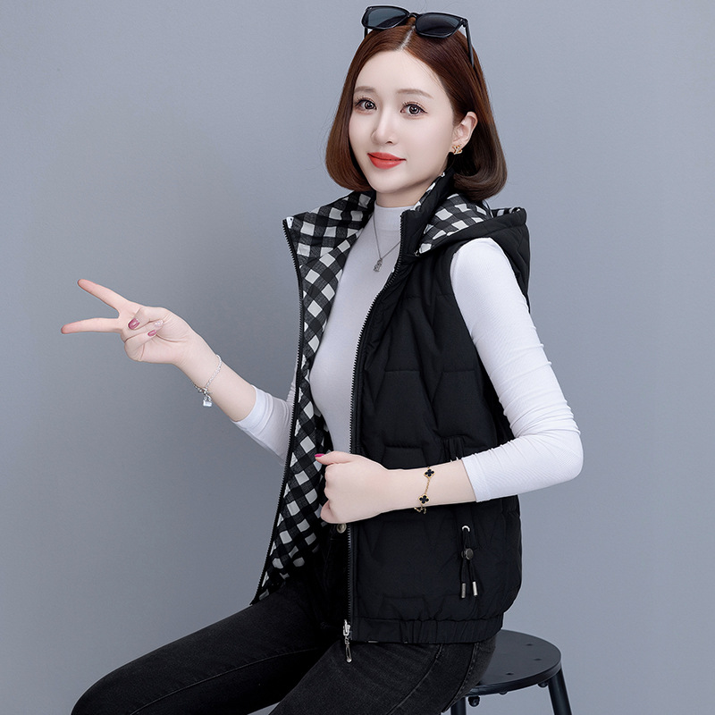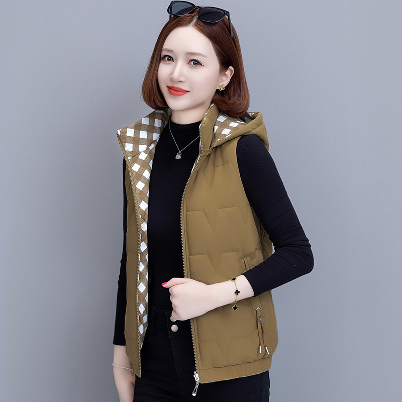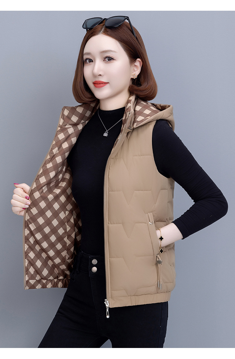 중년 어머니의 양면 후드 탈착식 면복 조끼 여성용 가을과 겨울 새로운 외국 스타일 대비 컬러 지퍼 카디건 코트스토어 가기
