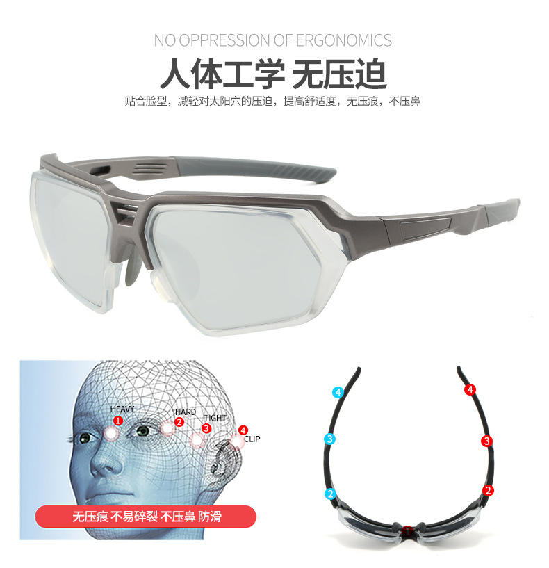 新款户外运动骑行眼镜欧美自行车变色太阳镜男女连体跨境运动墨镜
