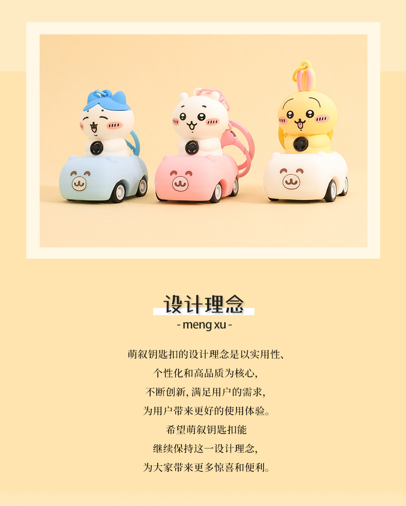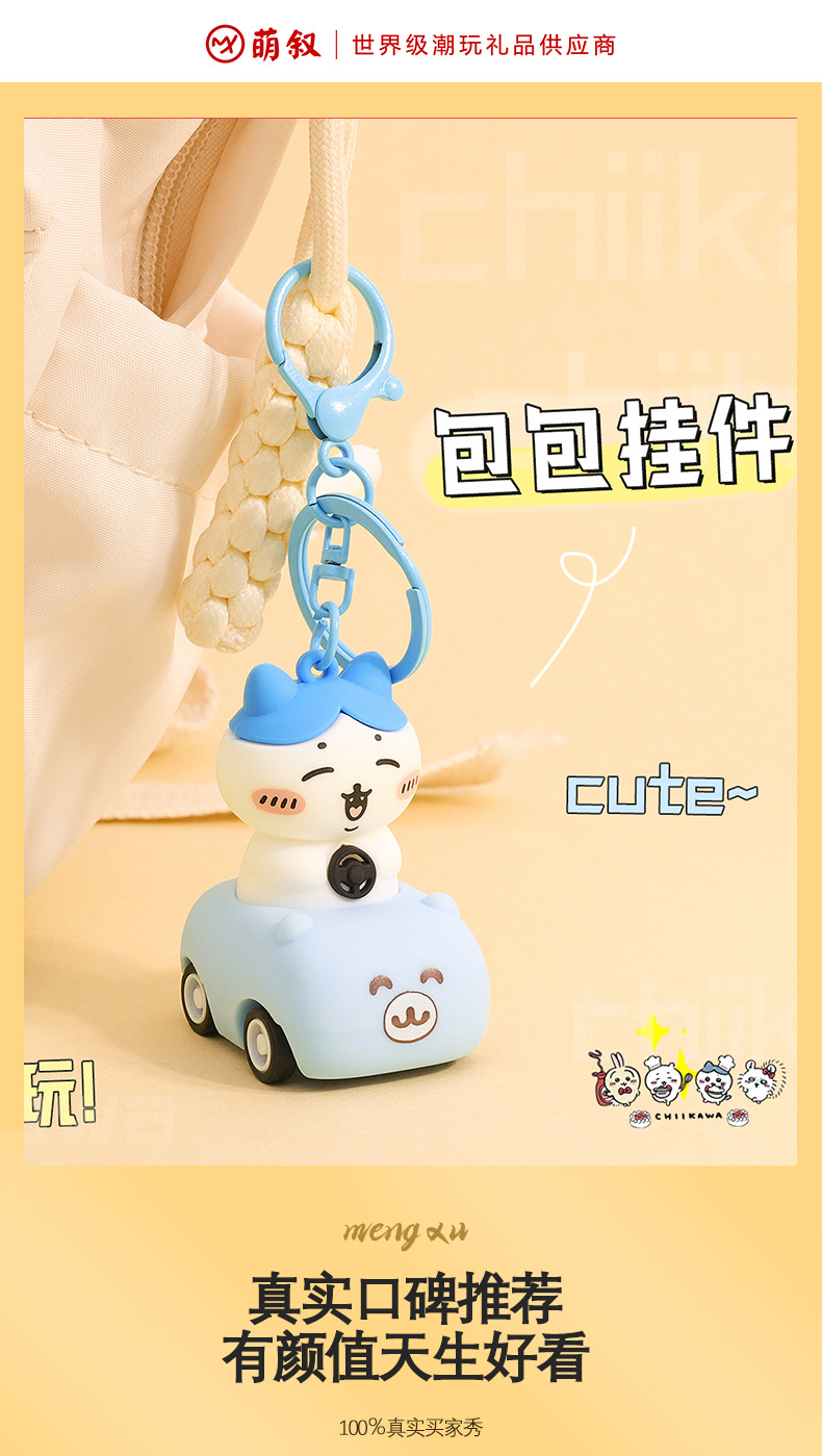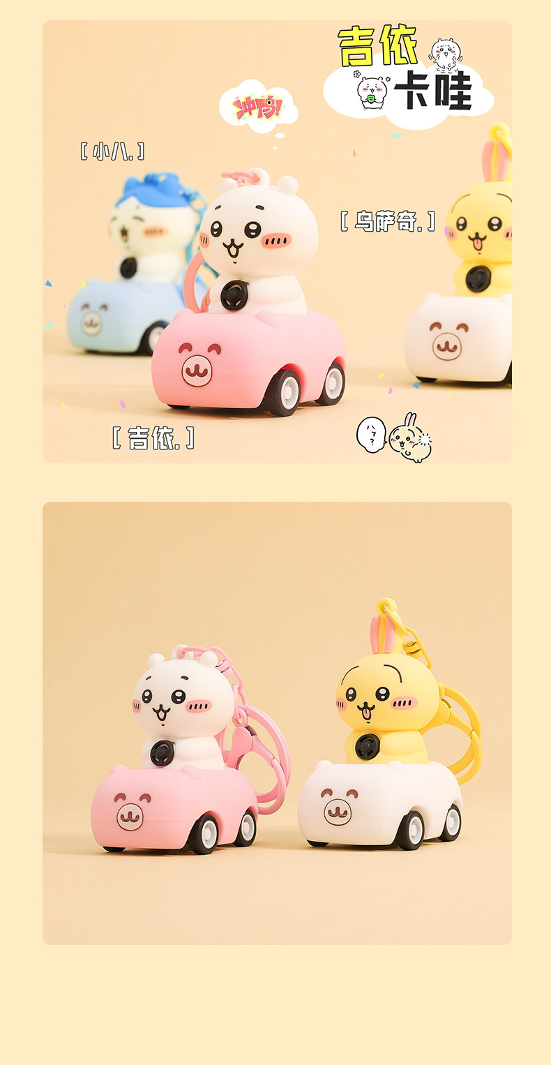 일본 chiikawa 풀백 자동차 만화 키 체인 창조적 인 Jiyika wow 인형 학생 책가방 펜던트 도매스토어 가기