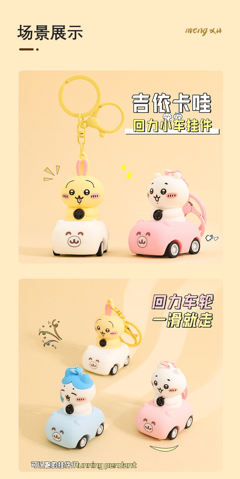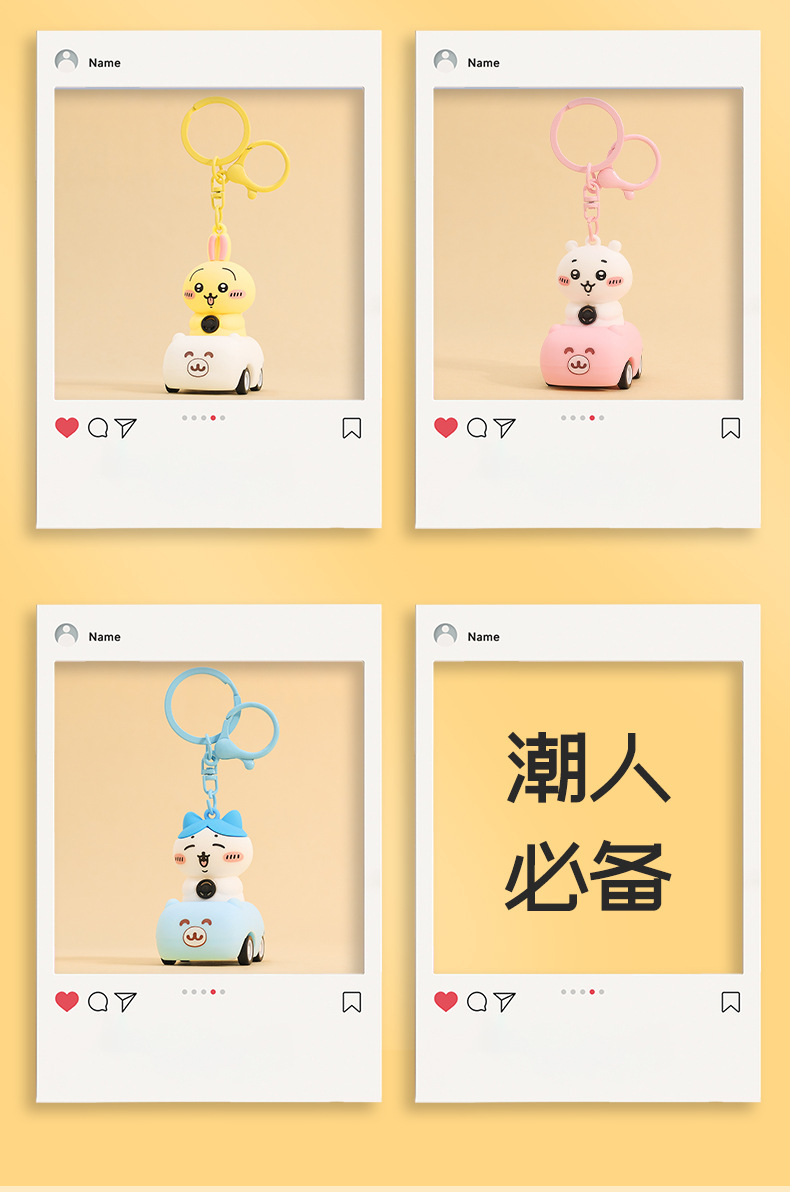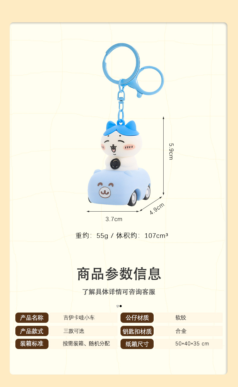일본 chiikawa 풀백 자동차 만화 키 체인 창조적 인 Jiyika wow 인형 학생 책가방 펜던트 도매스토어 가기
