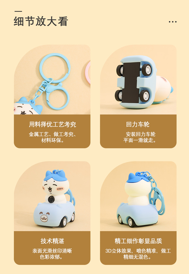 일본 chiikawa 풀백 자동차 만화 키 체인 창조적 인 Jiyika wow 인형 학생 책가방 펜던트 도매