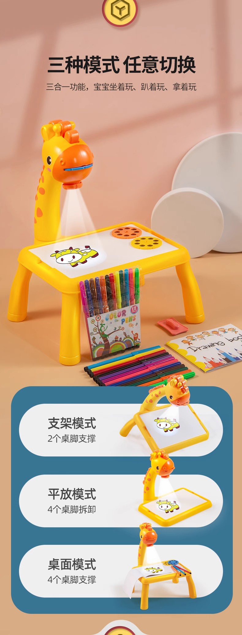 • [충전 증가 사진 24장] 핑크사슴 프로젝션 화판 (펜 12개 + 그림책)