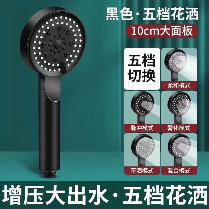 공장 직접 공급 블랙 5 단 강판 표면 가압 큰 물 출력 노즐 욕실 샤워 헤드 비 목욕 깡패 샤워 헤드스토어 가기