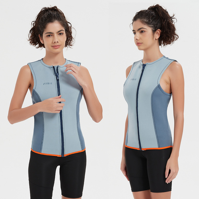 여자 다이빙 조끼 2MM 민소매 스플릿 다이빙 세트 자외선 차단제 따뜻한 수영 서핑 스노클링 세트 표류하는 조끼 그레이스토어 가기