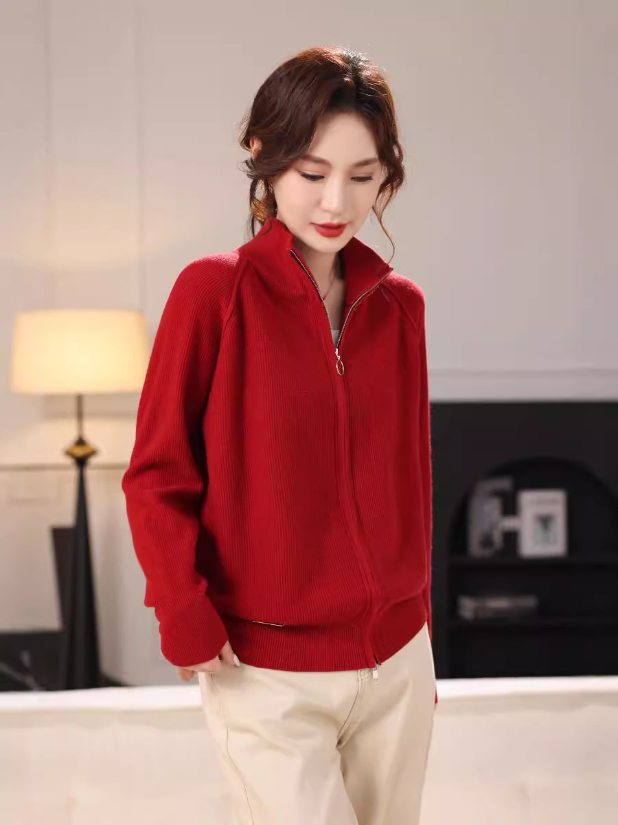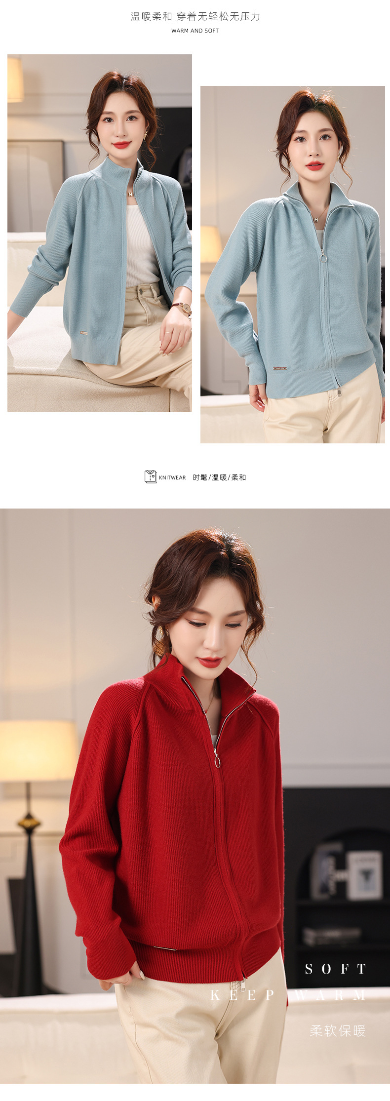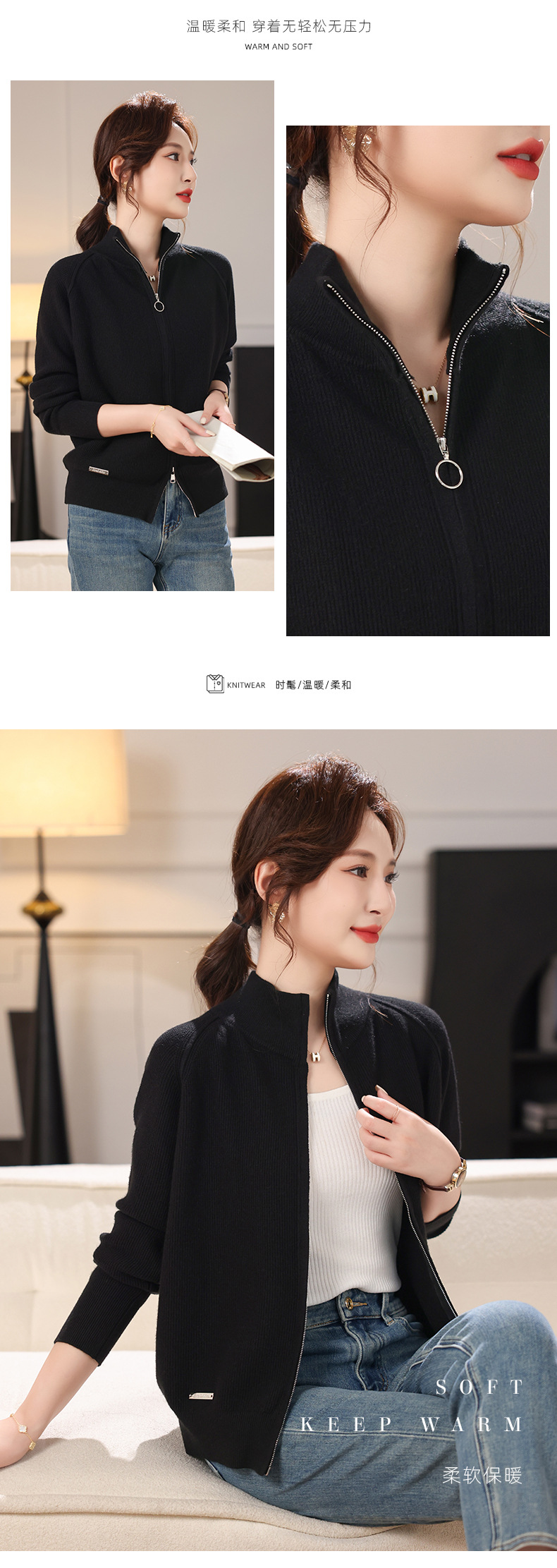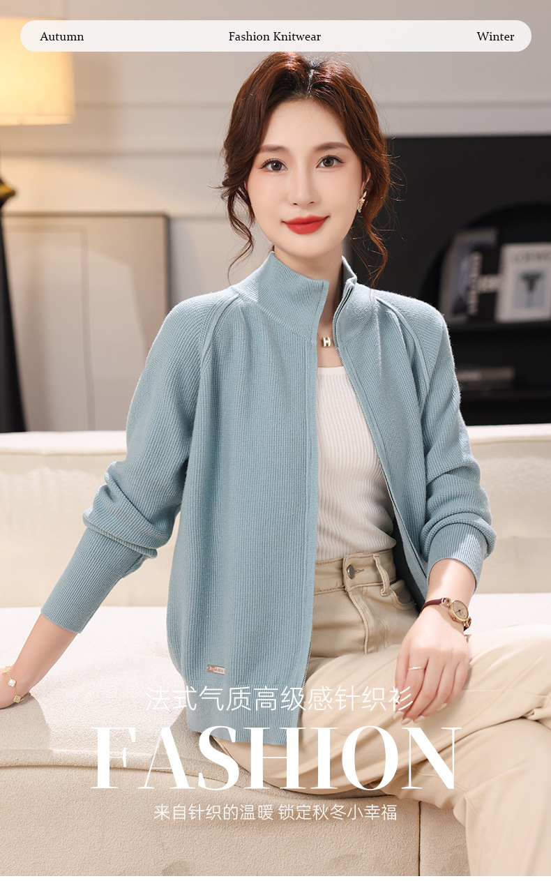 플러스 사이즈 여성의 가을과 겨울 따뜻한 캐주얼 지퍼 터틀넥 통근 간단한 패션 올 매치 스웨터 짧은 카디건 재킷