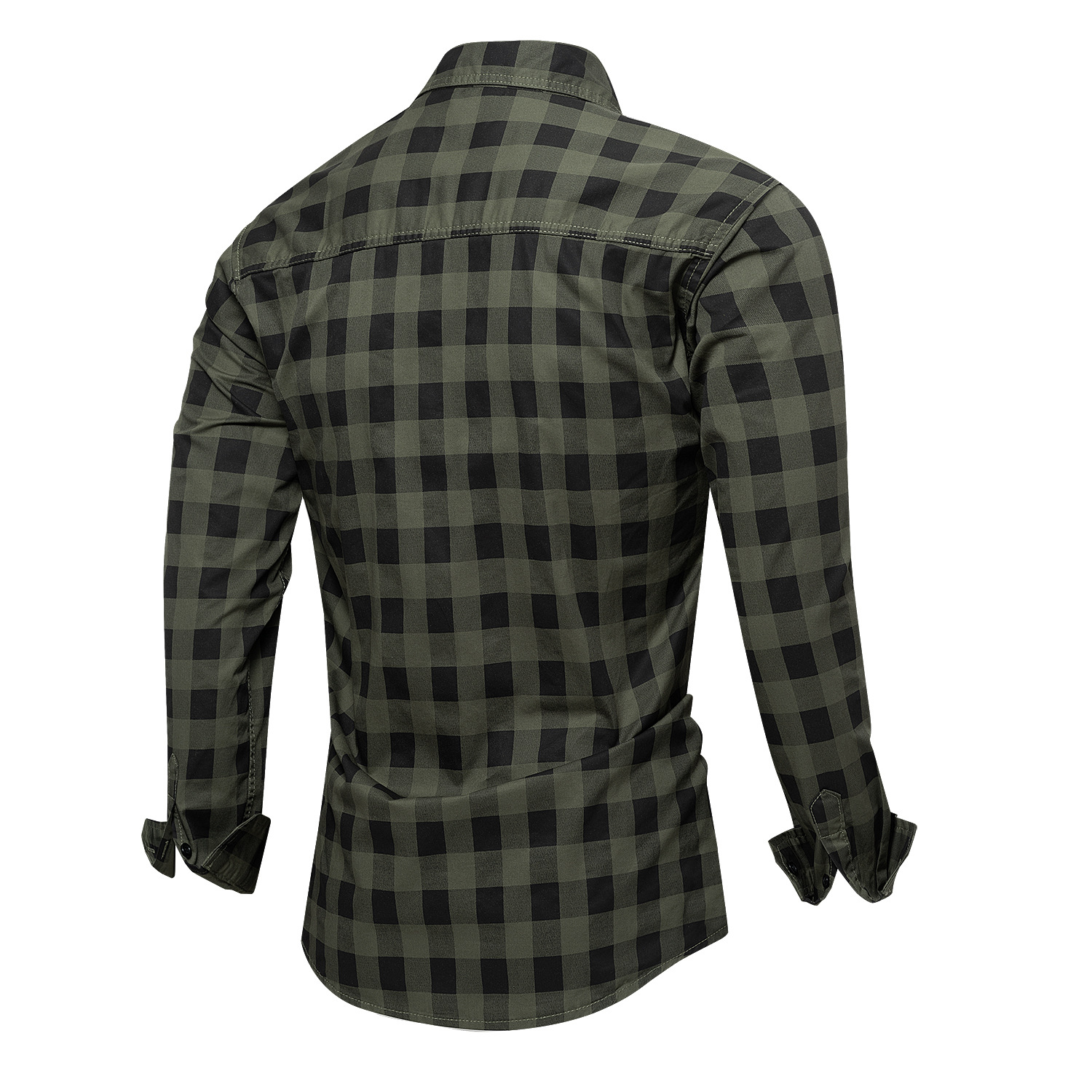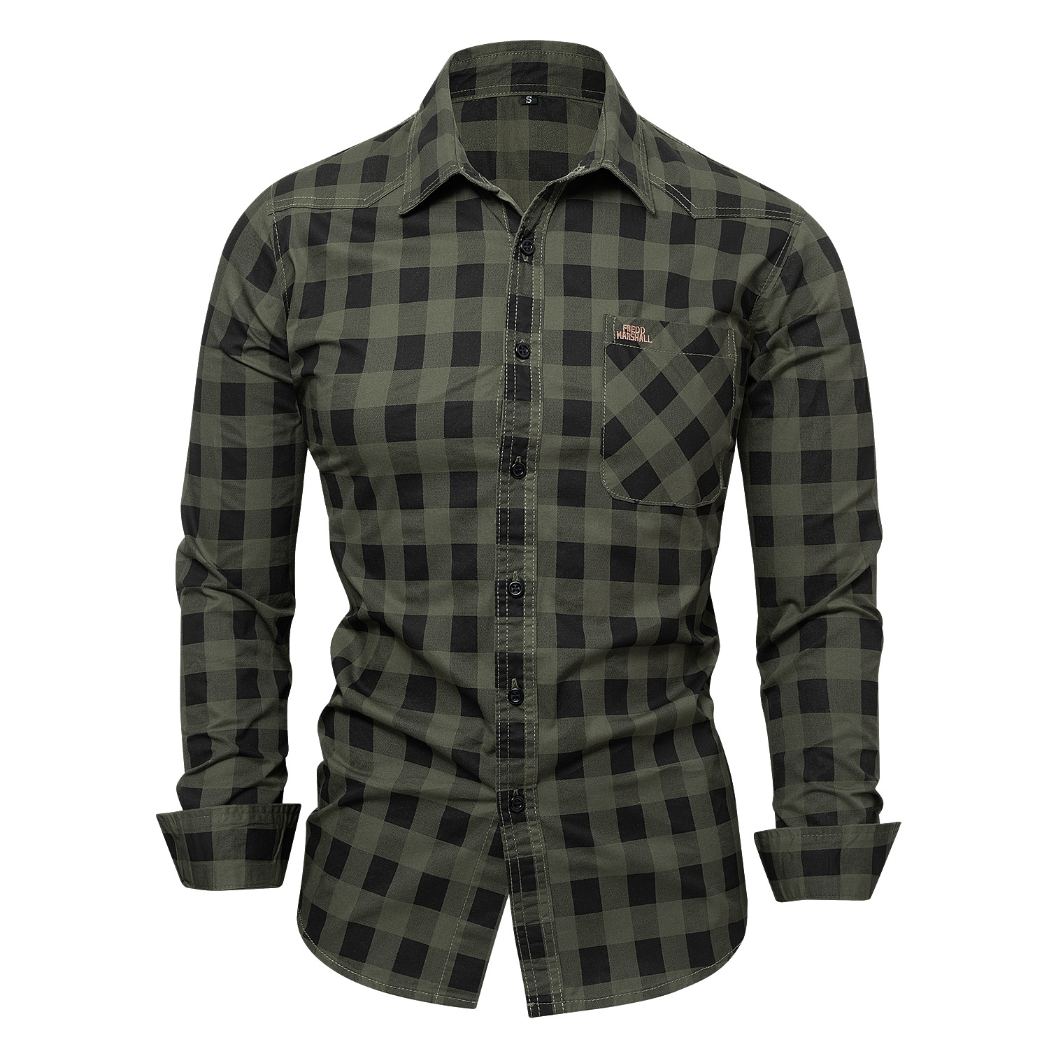 2024 가을 새로운 남성 격자 무늬 작업 셔츠 로고 긴 소매 100% 면 셔츠 포켓 121