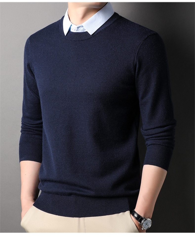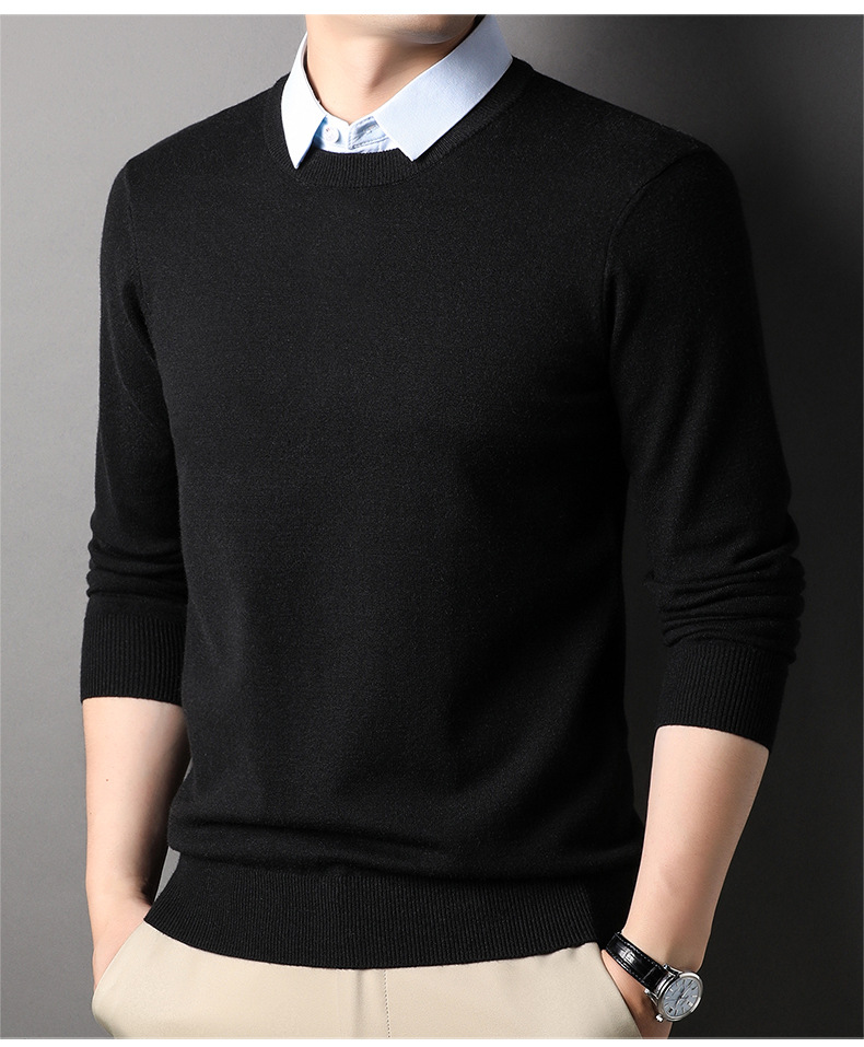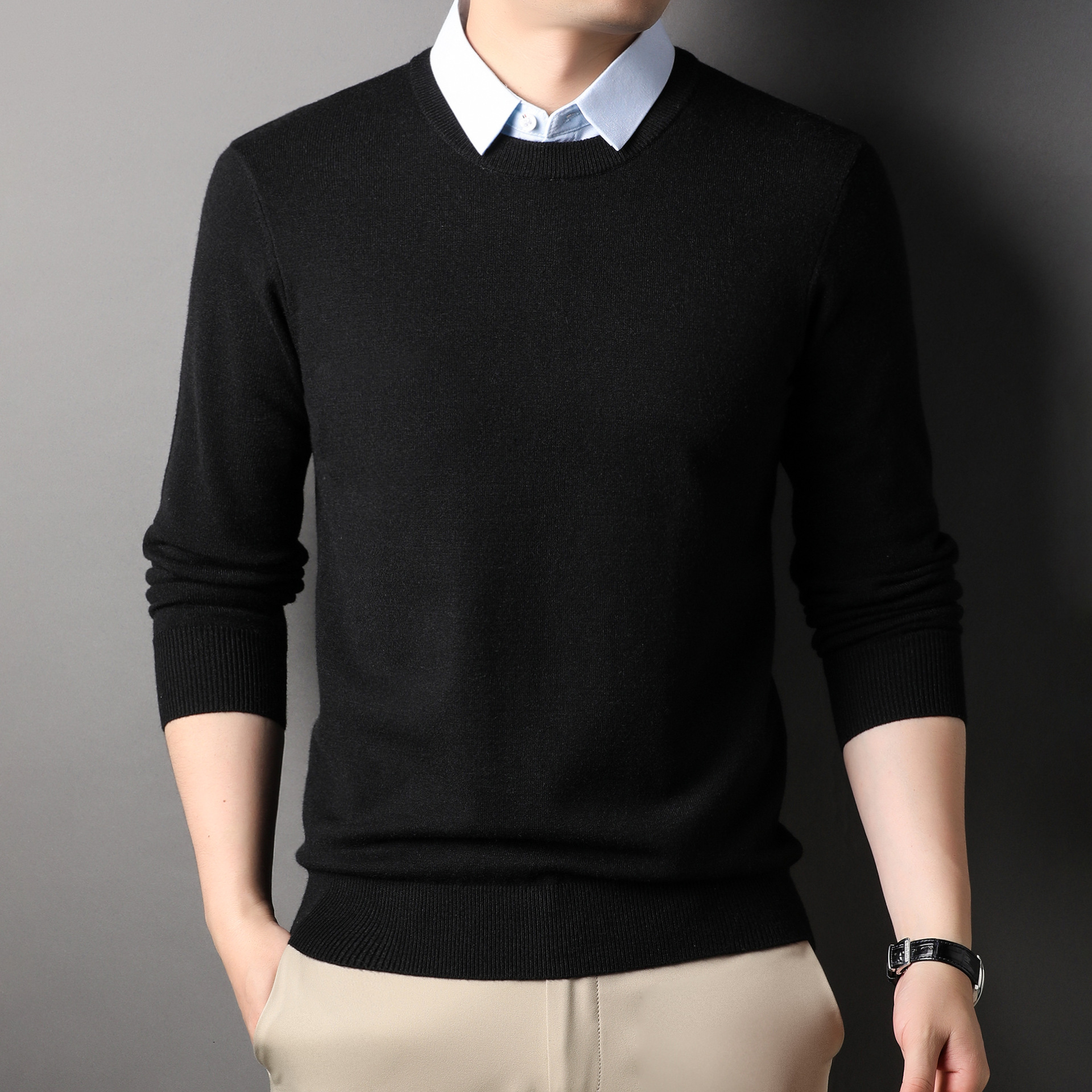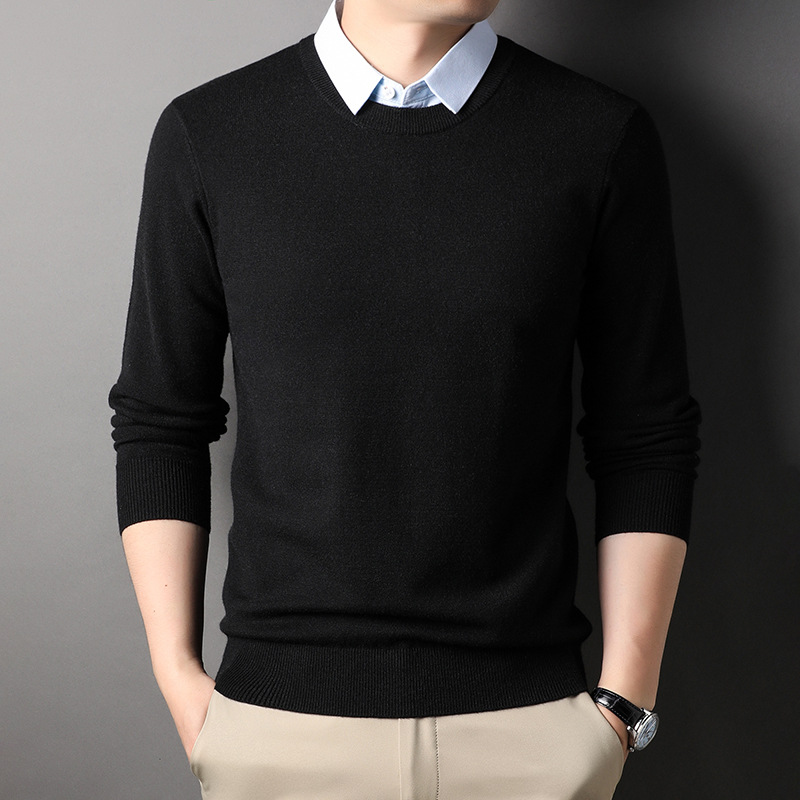 2024 겨울 남자의 두꺼운 가짜 투피스 스웨터 패션 셔츠 칼라 단색 그물 버전 옷깃 스웨터 도매스토어 가기
