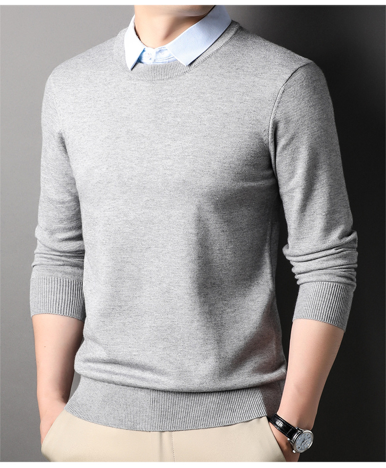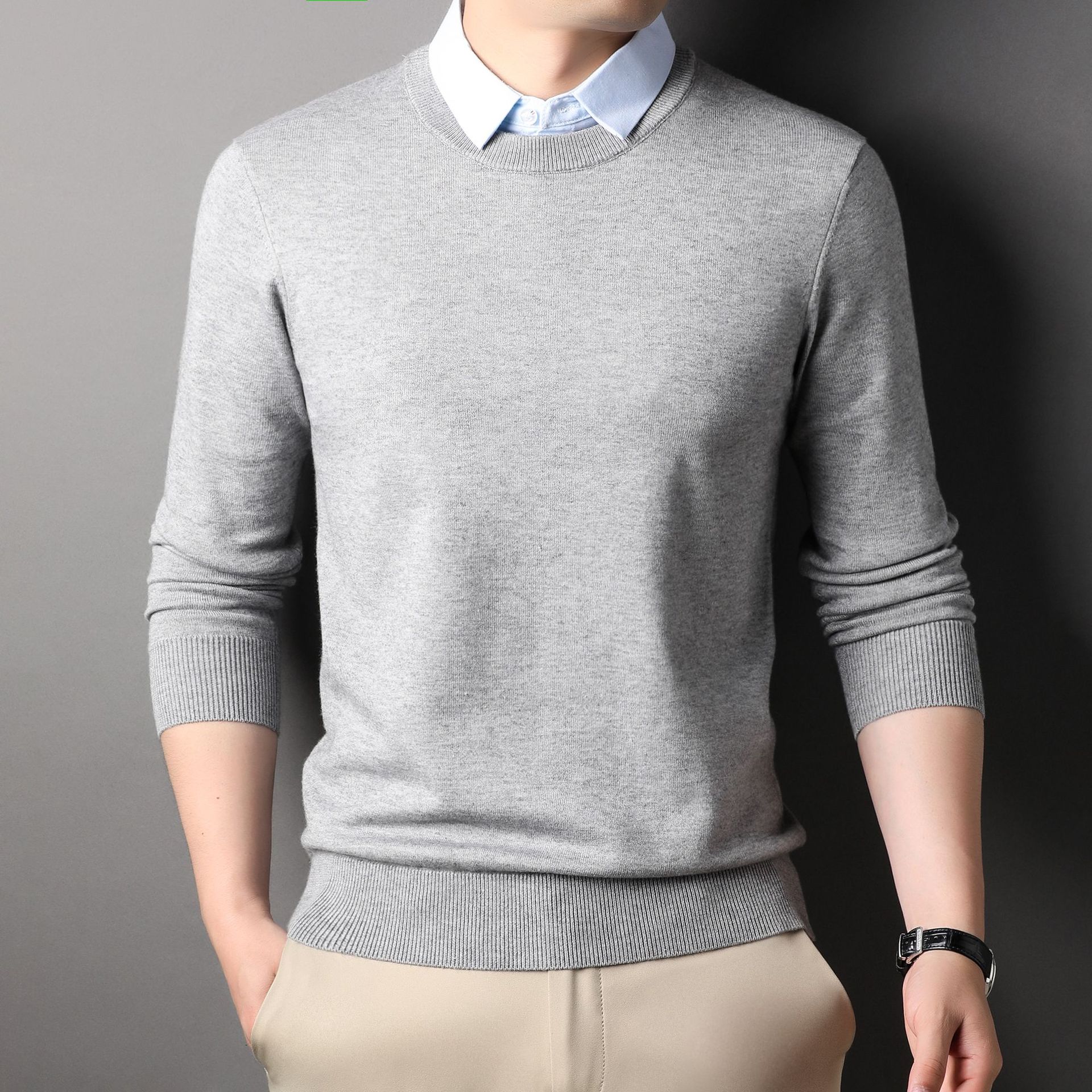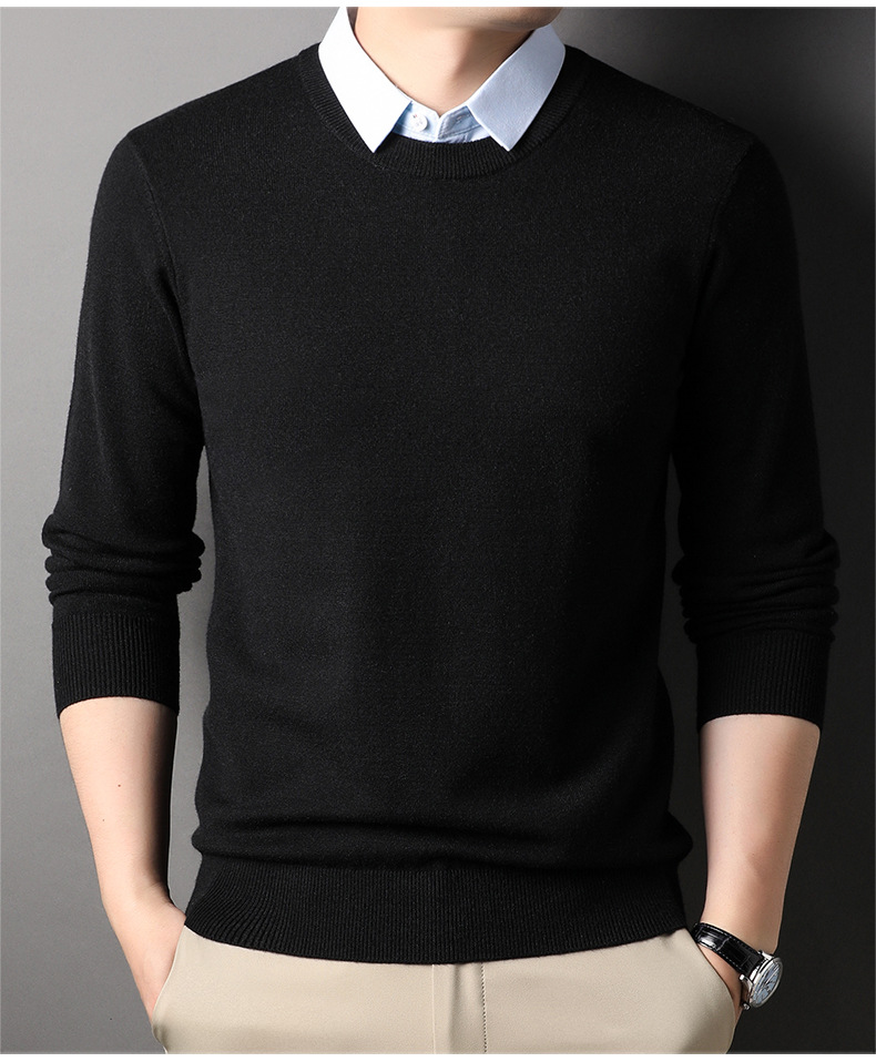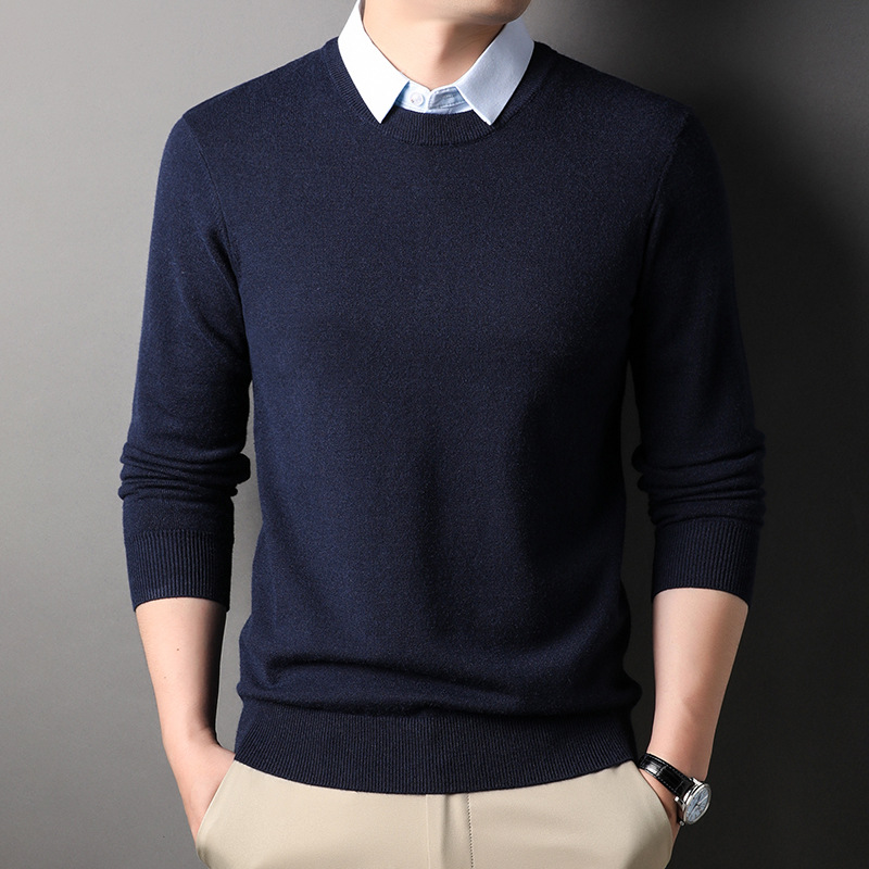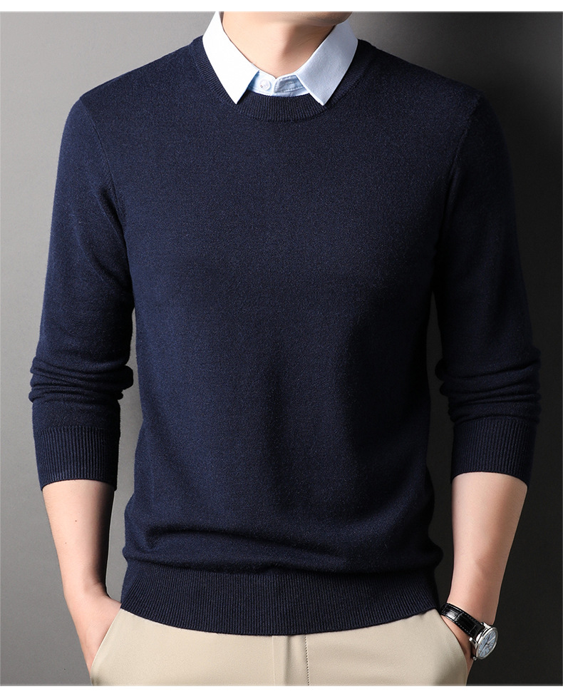 2024 겨울 남자의 두꺼운 가짜 투피스 스웨터 패션 셔츠 칼라 단색 그물 버전 옷깃 스웨터 도매스토어 가기