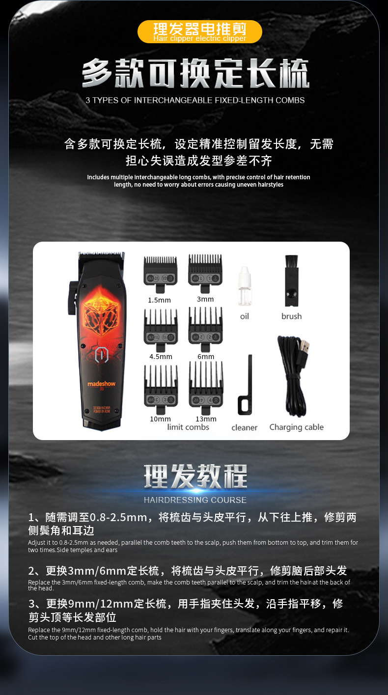 Akemei D0C 헤어 클리퍼 전문 그라디언트 남성 오일 헤어 클리퍼 헤어 클리퍼 헤어 살롱 스페셜