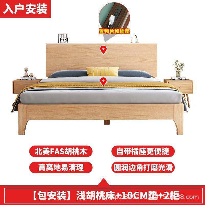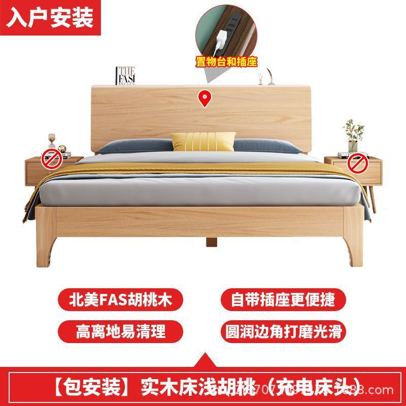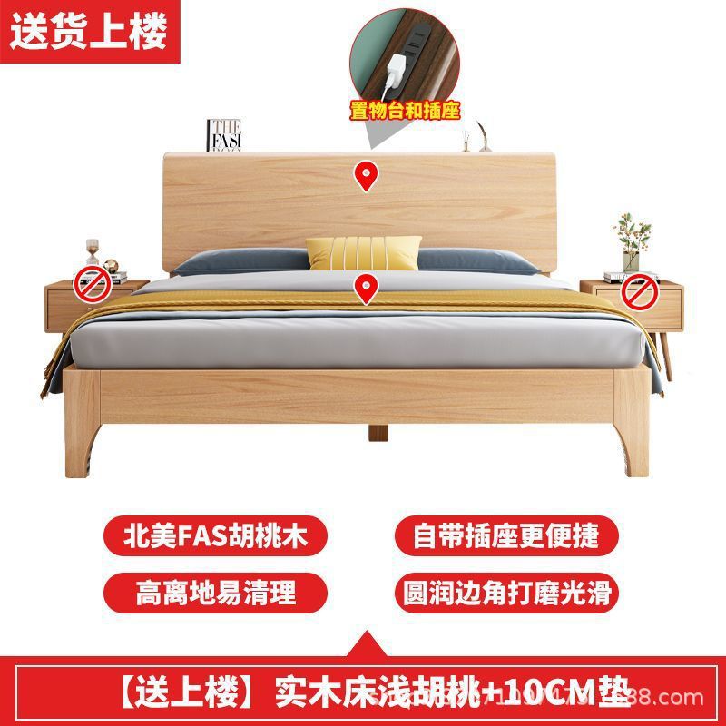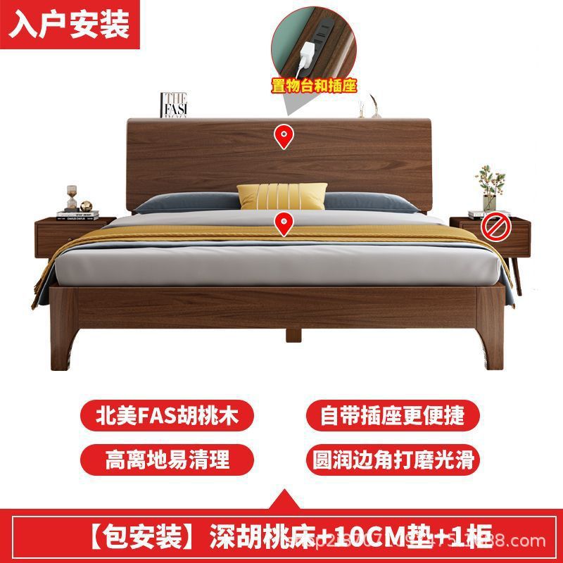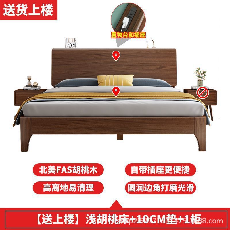 호두 단단한 나무 침대 1.8 m 현대 간단한 더블 1.5 마스터 침실 침대 1.2m 싱글 침대 웨딩 침대 보관 침대스토어 가기