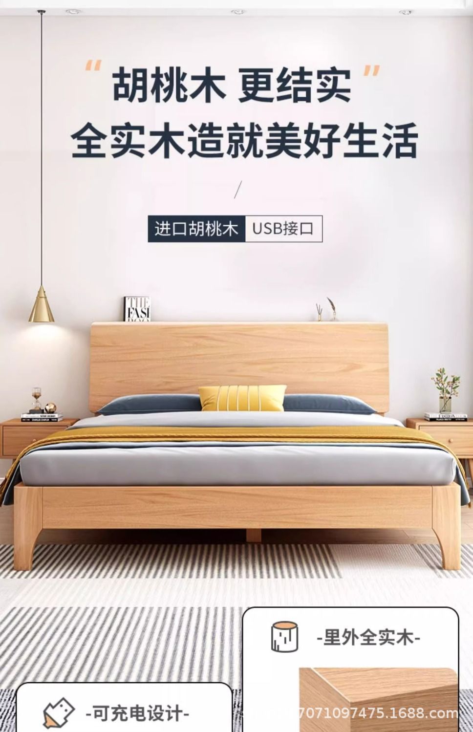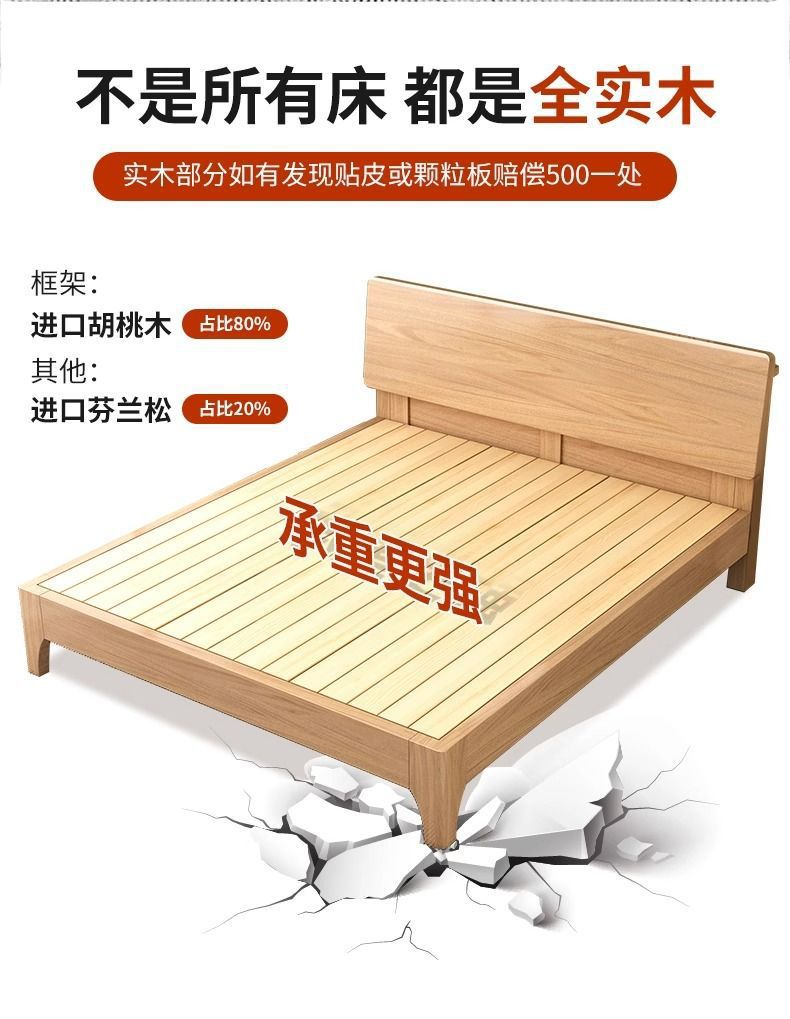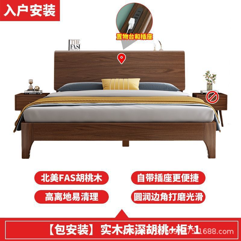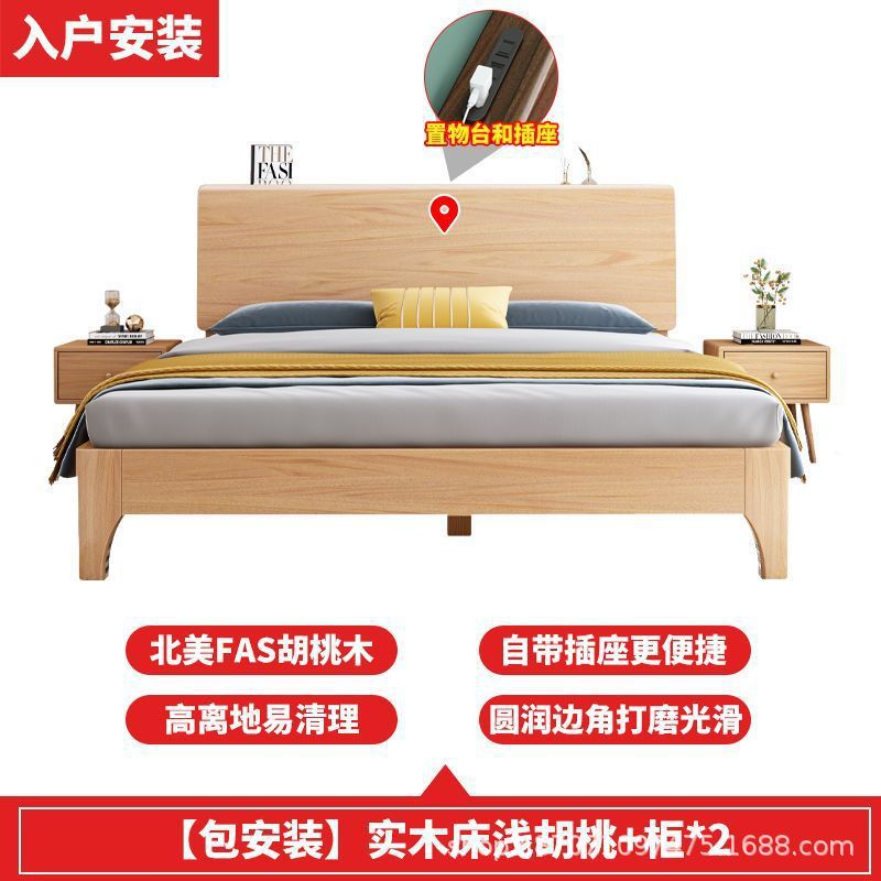 호두 단단한 나무 침대 1.8 m 현대 간단한 더블 1.5 마스터 침실 침대 1.2m 싱글 침대 웨딩 침대 보관 침대스토어 가기