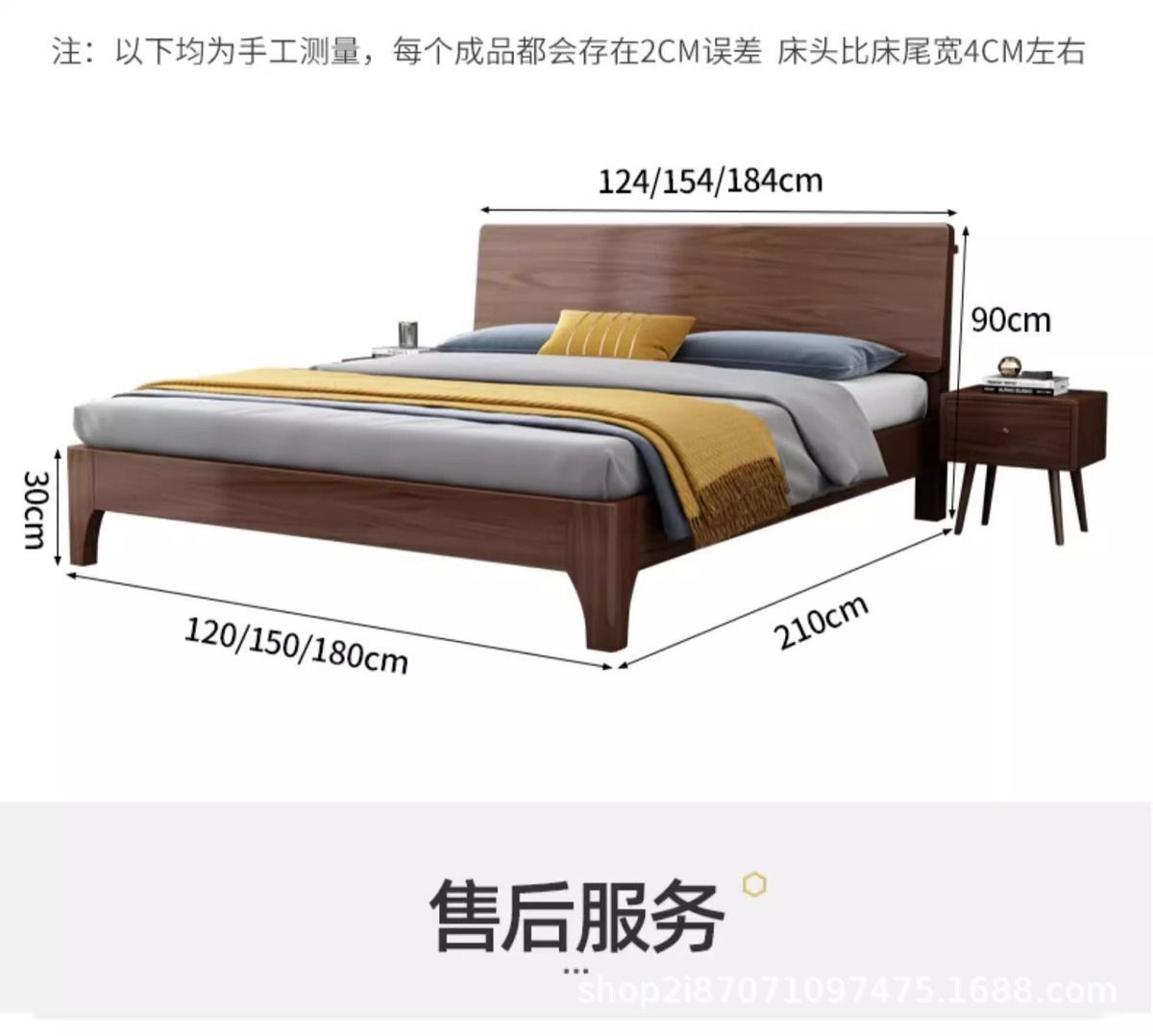 • 포장 설치 원목 침대 다크 호두 + 캐비닛*1