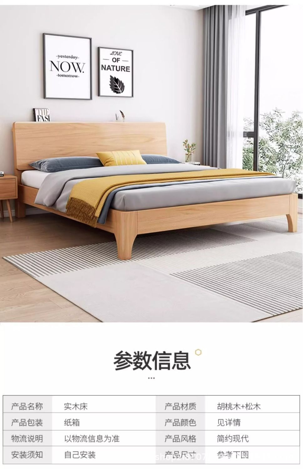 • 포장 설치 원목 침대 라이트 월넛 + 캐비닛*1