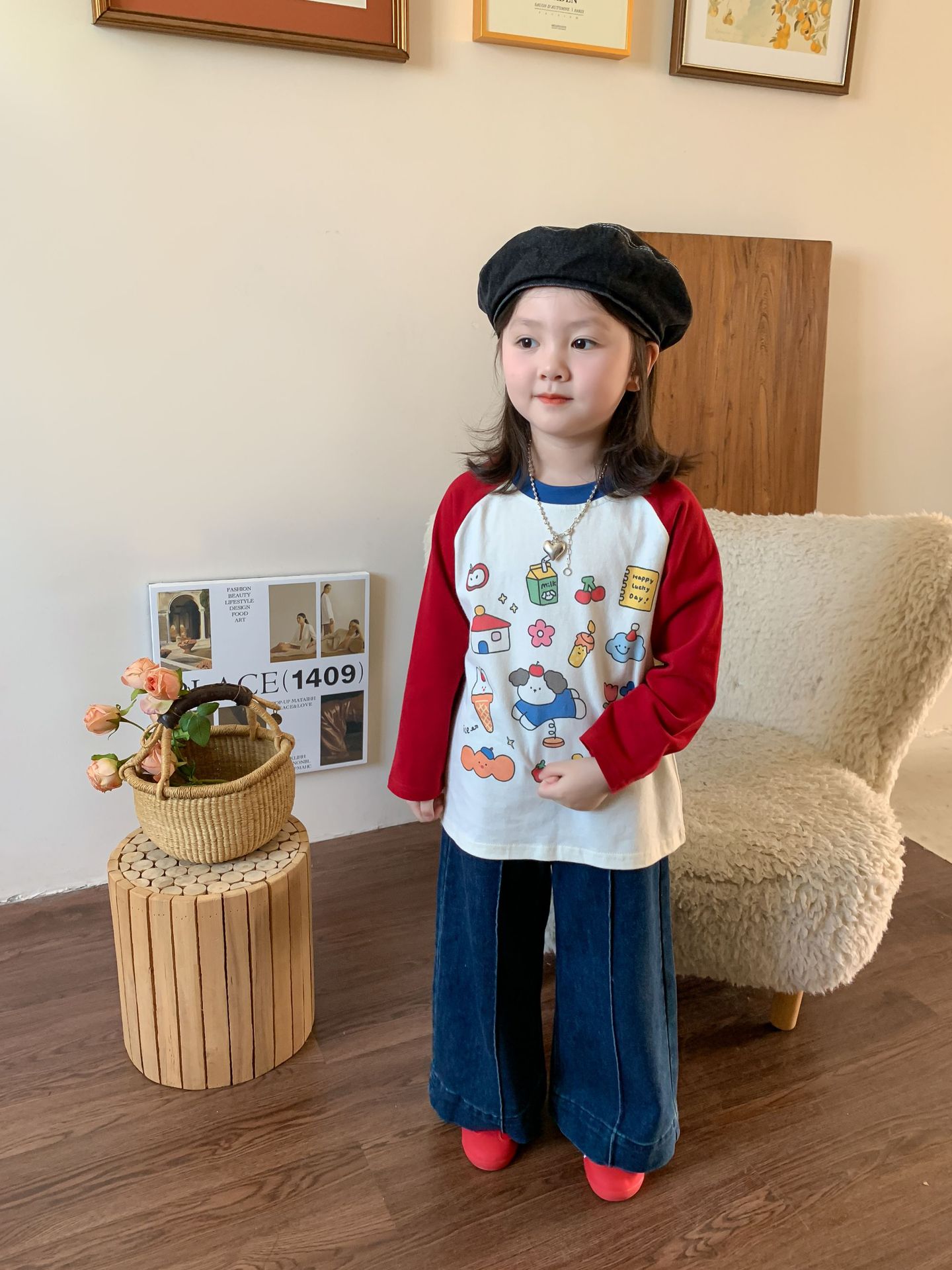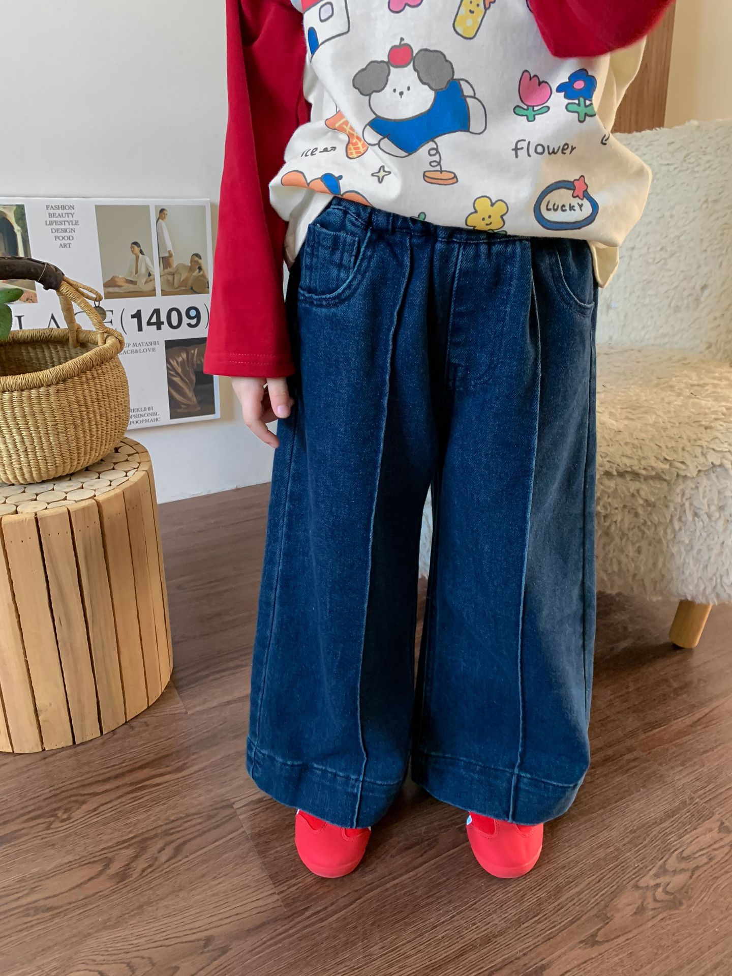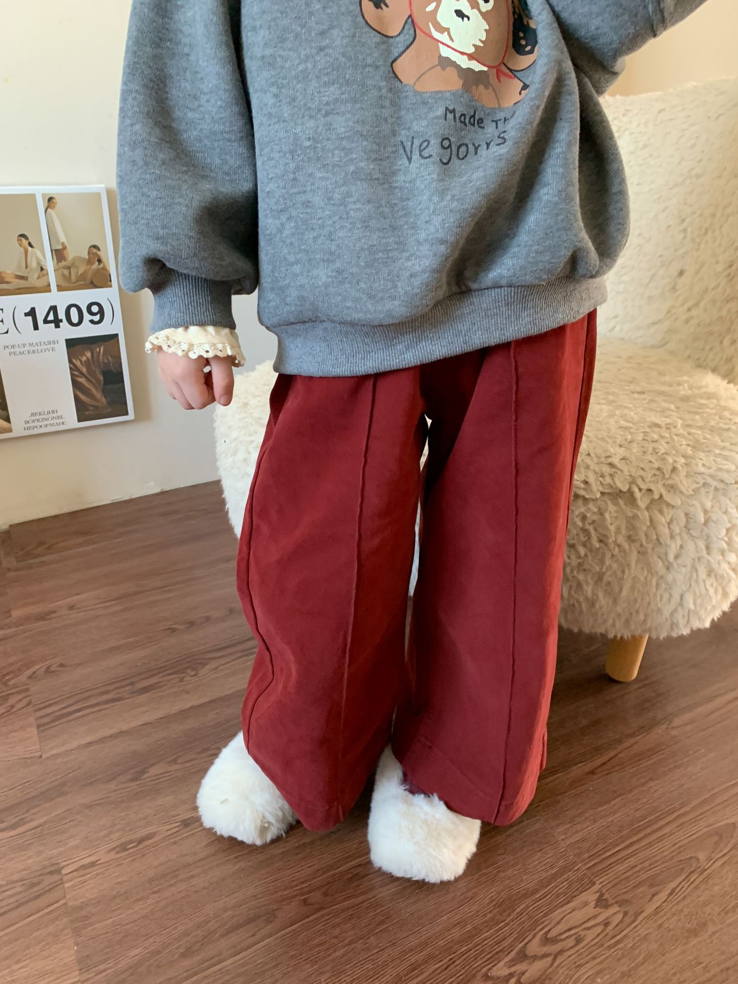 【재고정리】위무 아동복 여아 바지 2024 가을 신상 아동 한국 스타일 캐주얼 스웨트팬츠 나팔바지스토어 가기