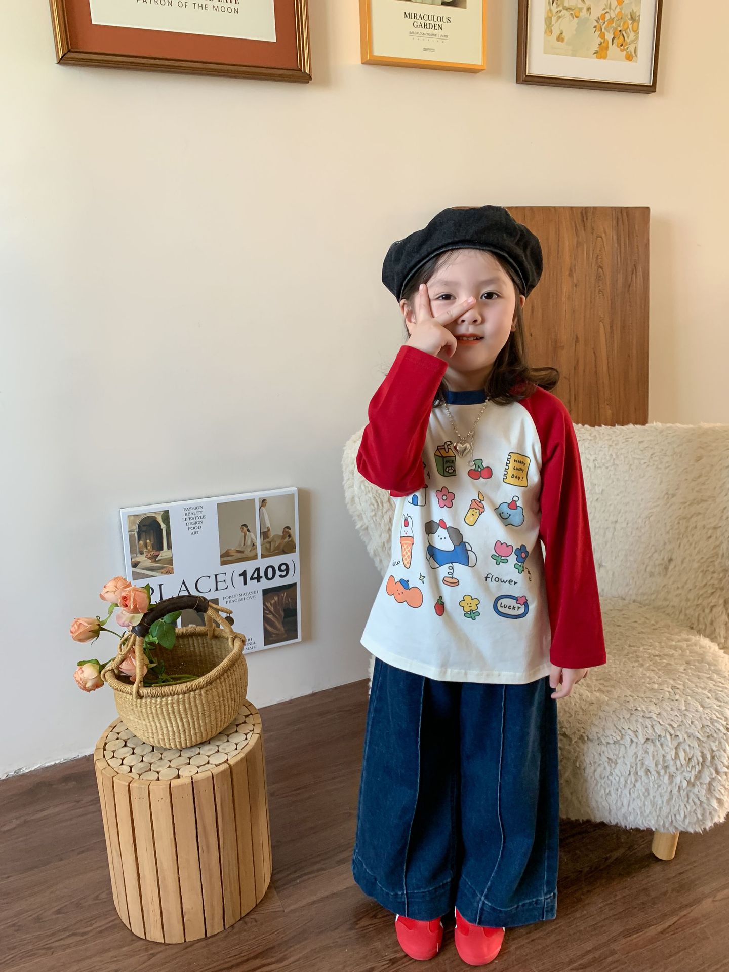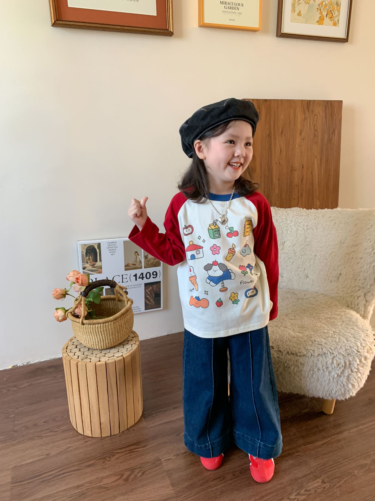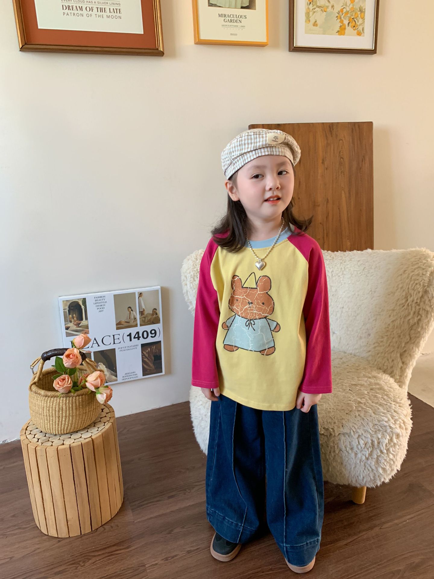 【재고정리】위무 아동복 여아 바지 2024 가을 신상 아동 한국 스타일 캐주얼 스웨트팬츠 나팔바지스토어 가기