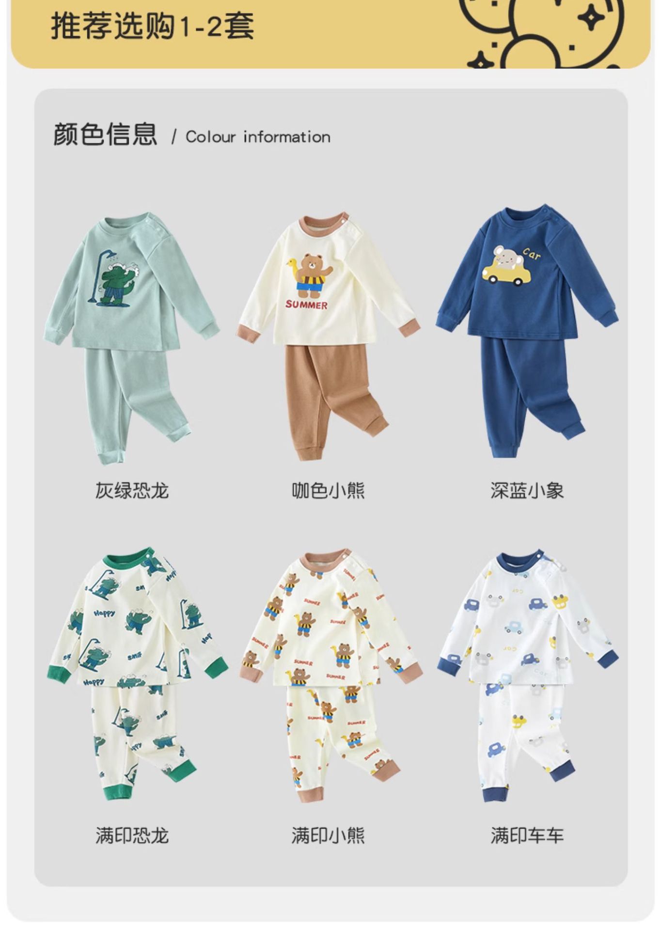 어린이 가을옷 세트 순면 남아 속옷 순면 홈웨어 아기 잠옷 봄 가을 2025 신상