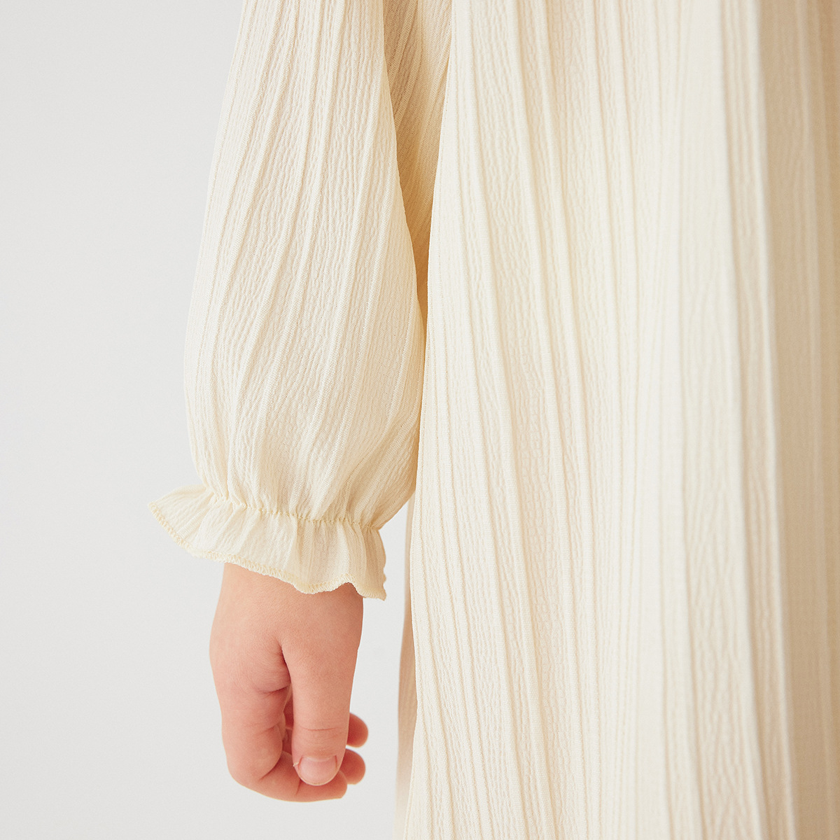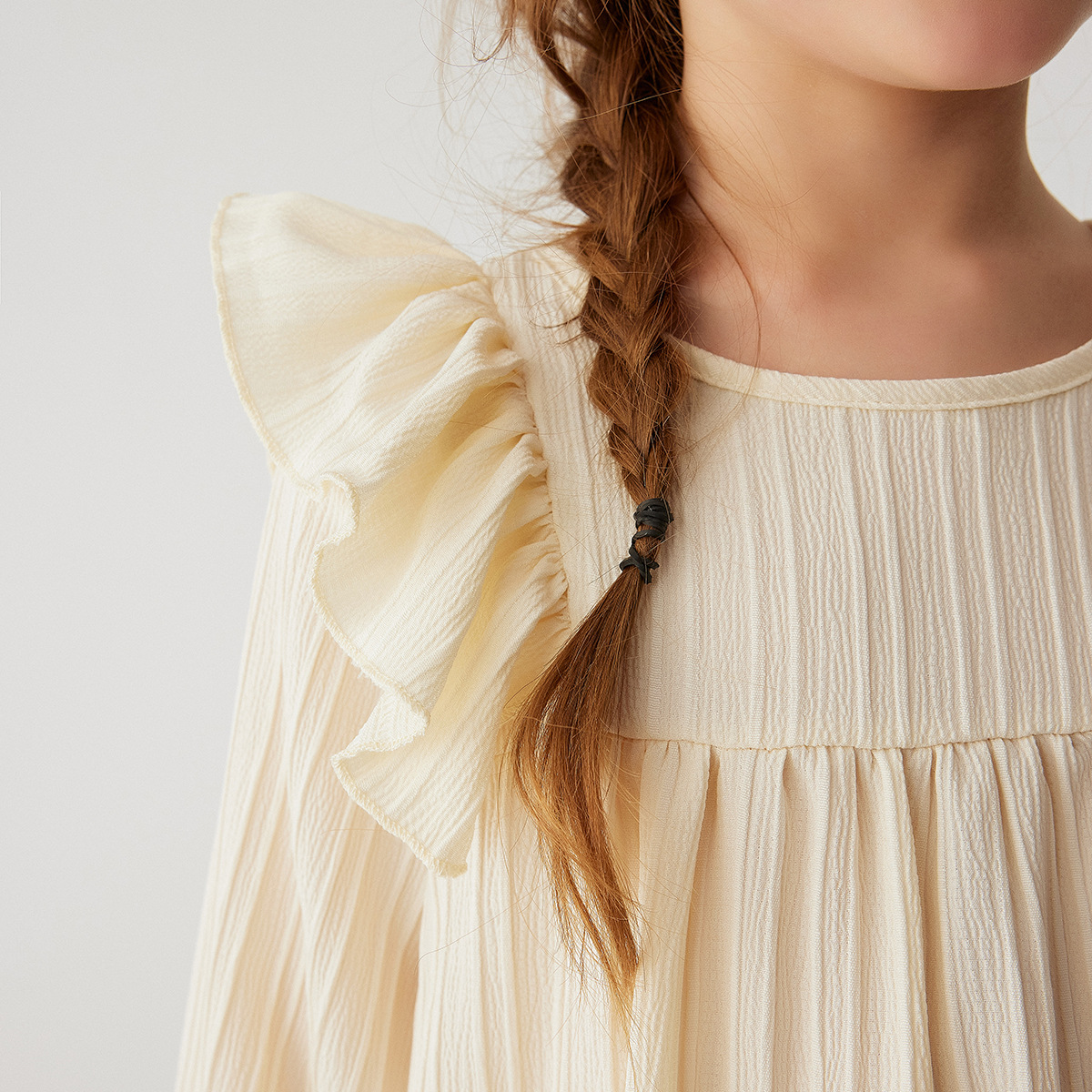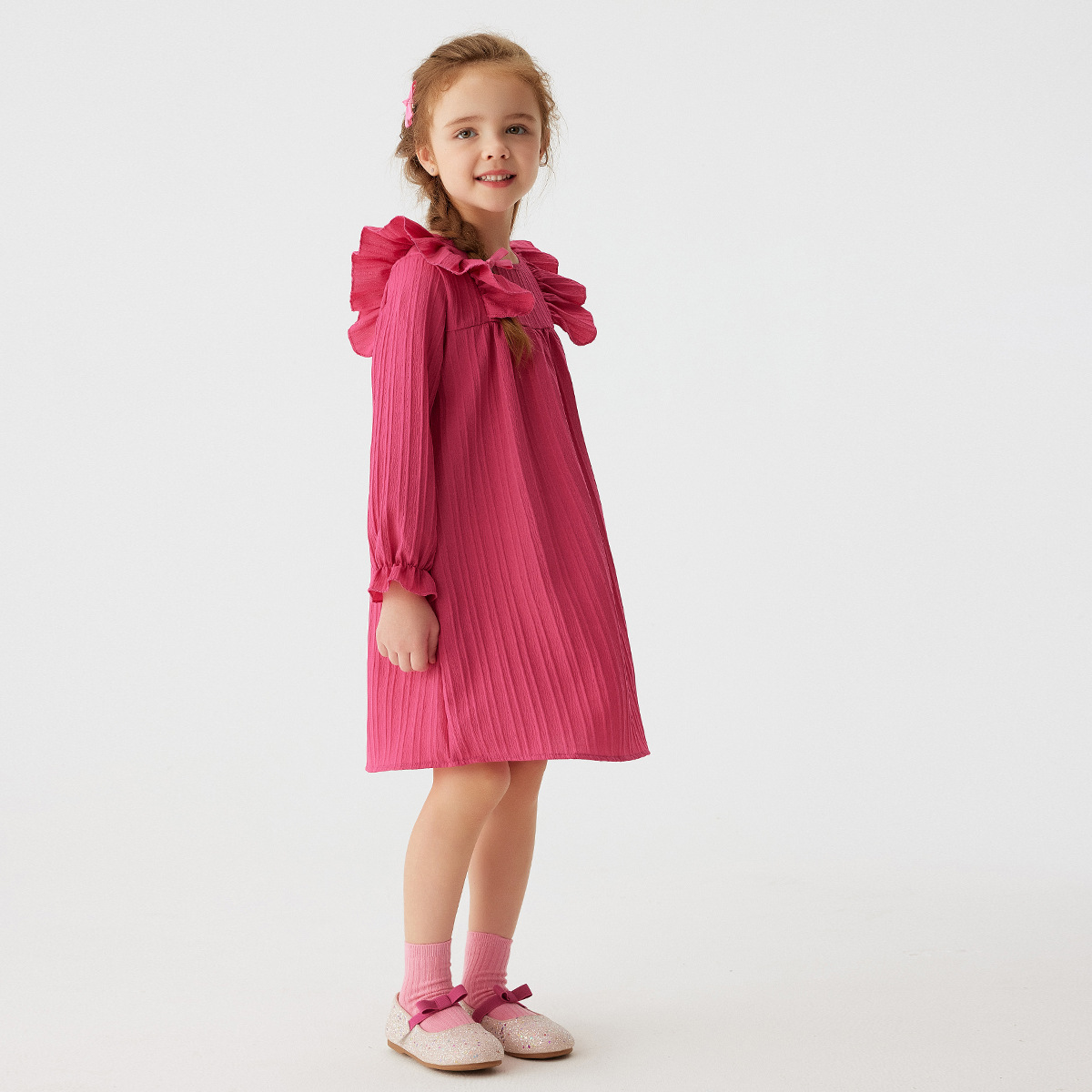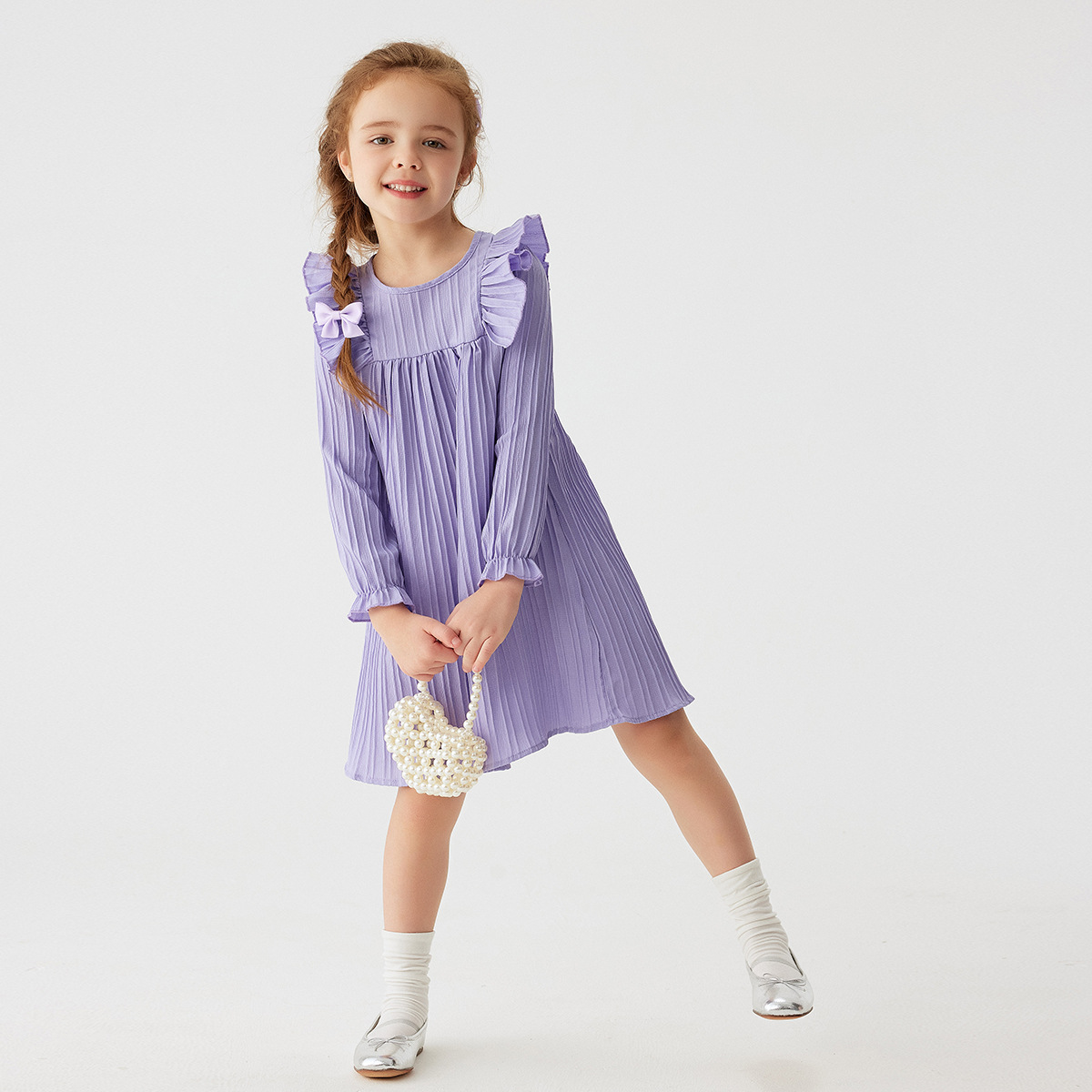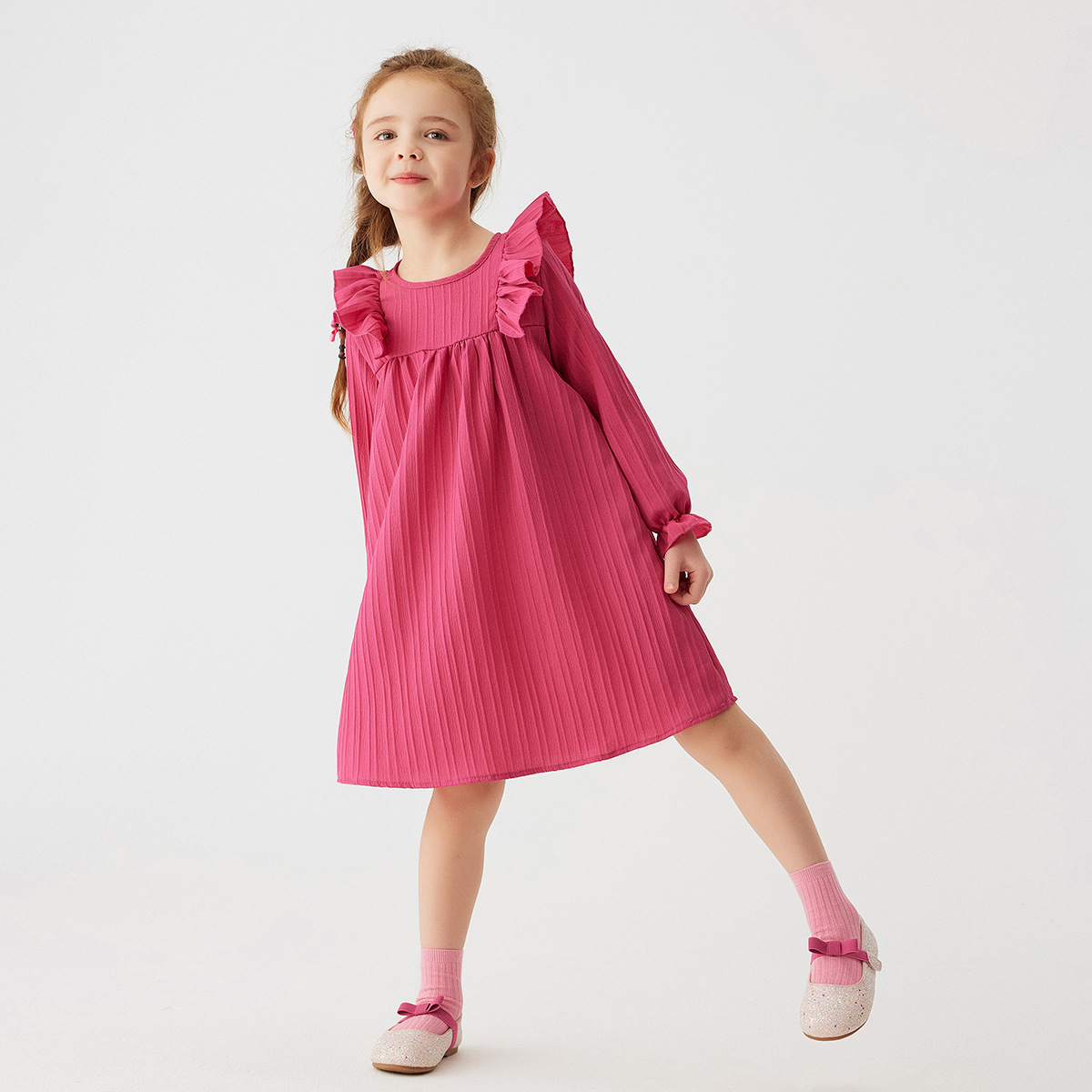 유럽과 미국 스타일의 여아 봄 가을 원피스, 러플 장식 긴팔 베이비 캐주얼 원피스, 단색 한국 스타일 데일리 A라인 스커트