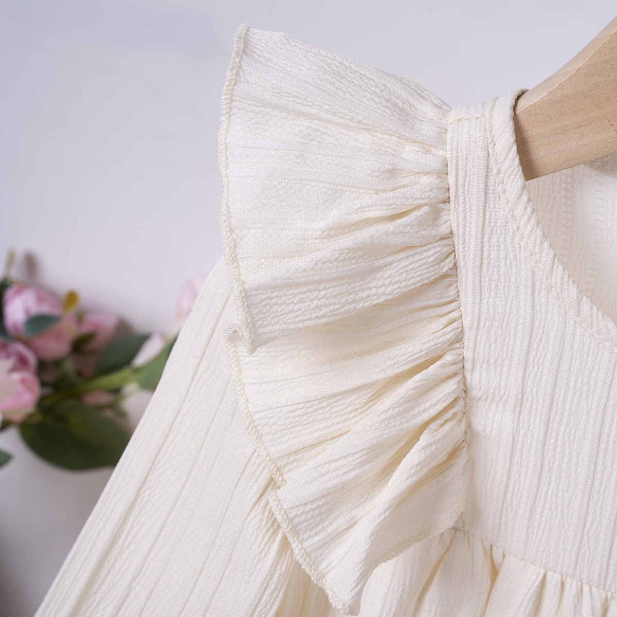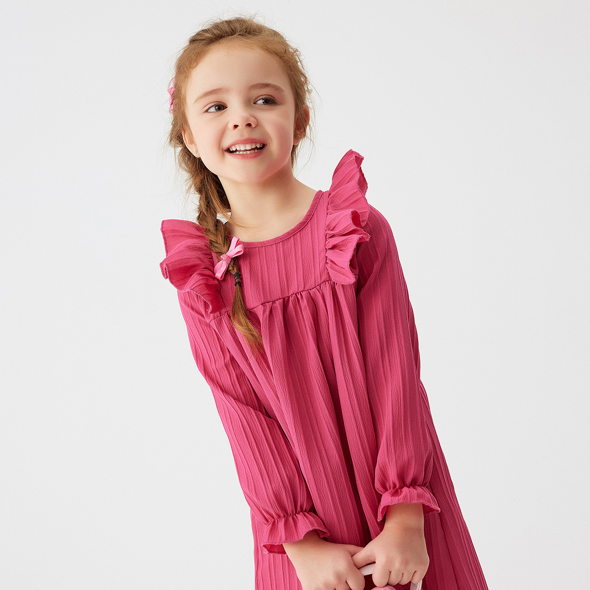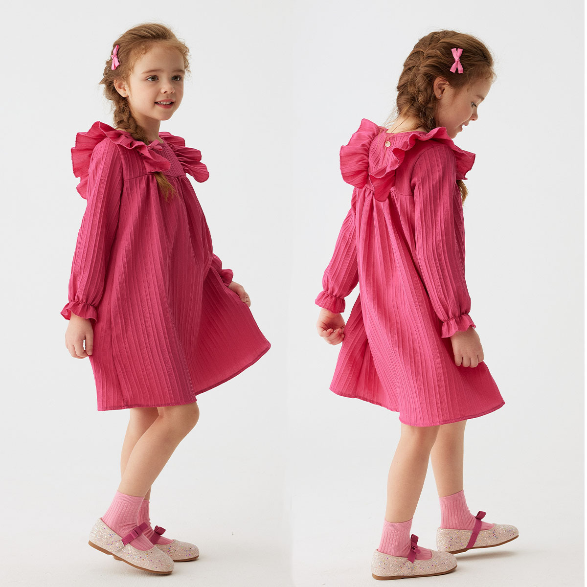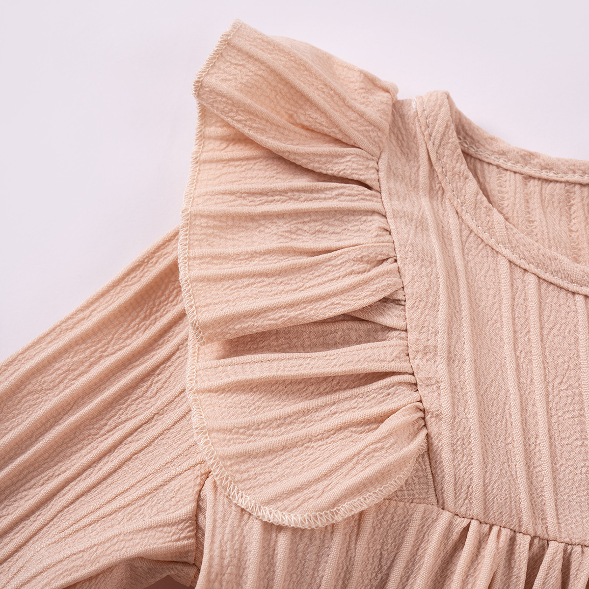 유럽과 미국 스타일의 여아 봄 가을 원피스, 러플 장식 긴팔 베이비 캐주얼 원피스, 단색 한국 스타일 데일리 A라인 스커트스토어 가기