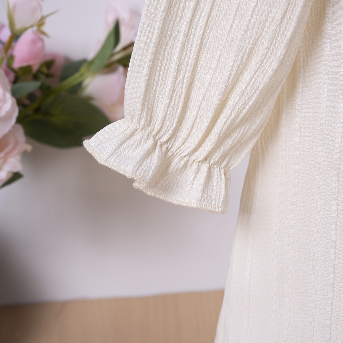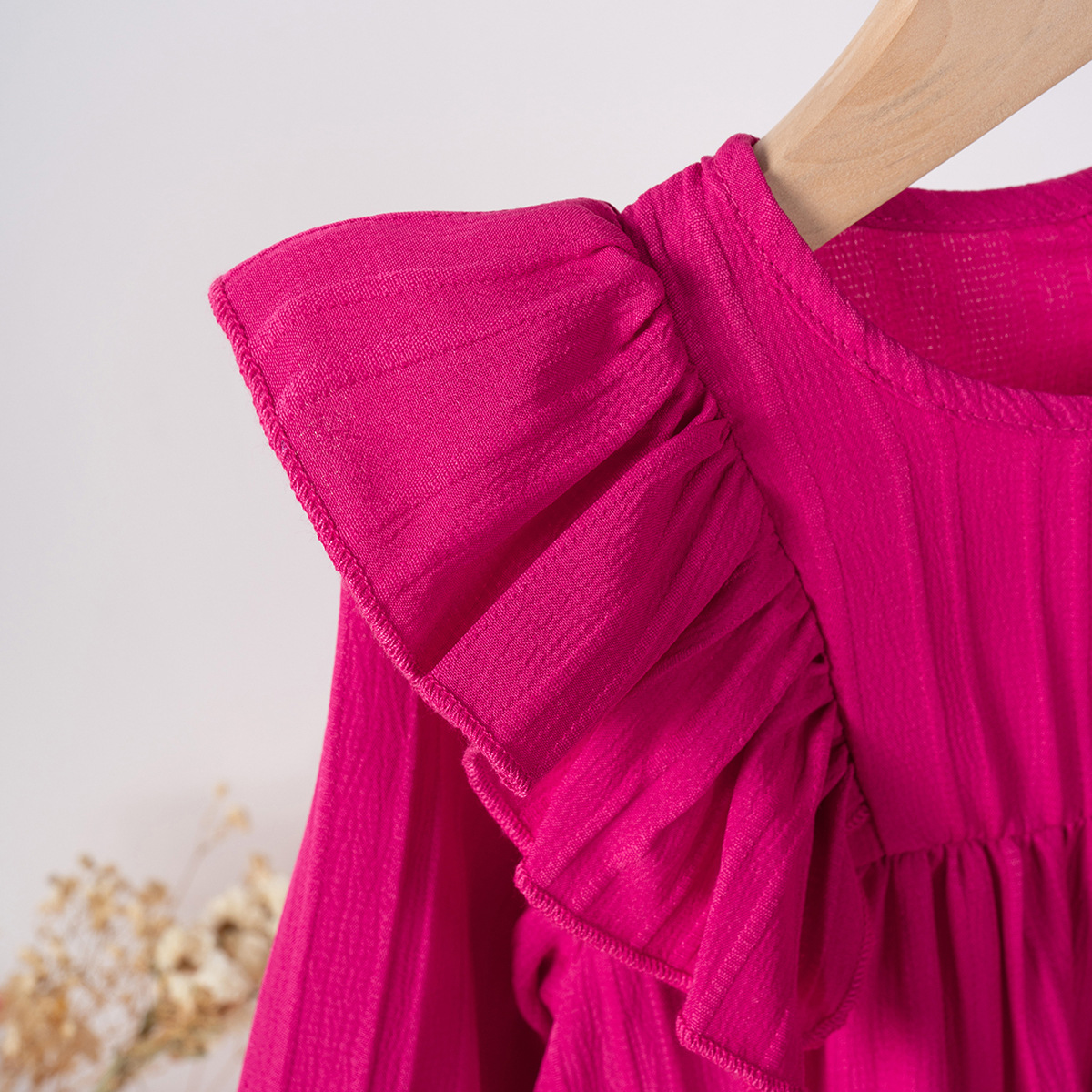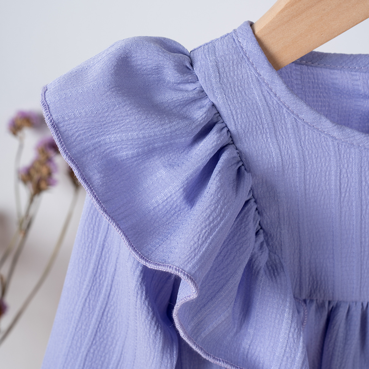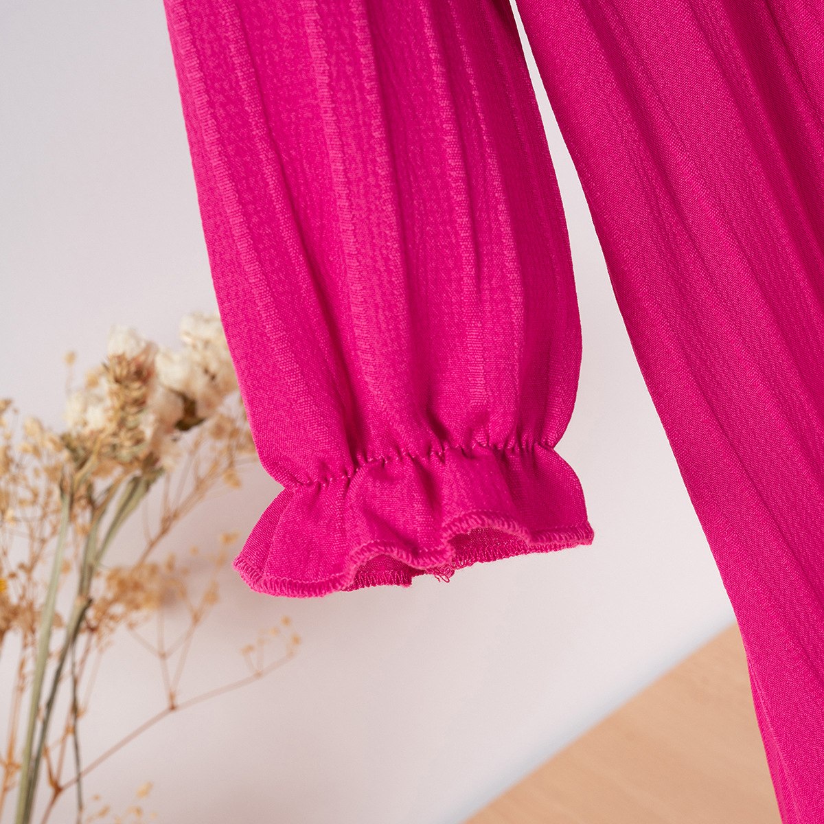 유럽과 미국 스타일의 여아 봄 가을 원피스, 러플 장식 긴팔 베이비 캐주얼 원피스, 단색 한국 스타일 데일리 A라인 스커트스토어 가기