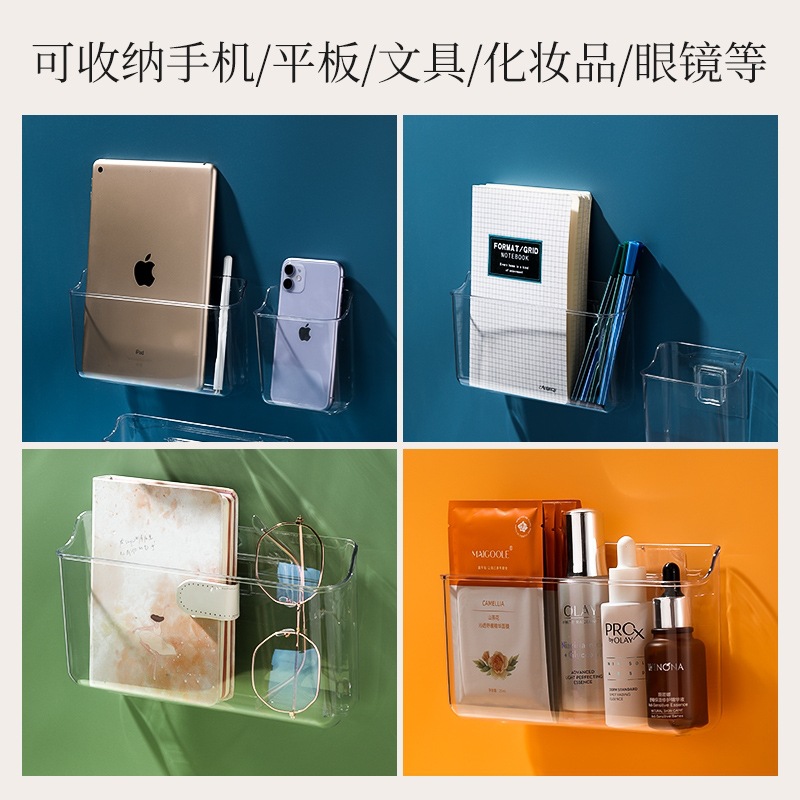 핏 랙 스토리지 랙 벽 마운트 스토리지 박스 투명 휴대 전화 원격 제어 칫솔 빗 욕실 거울 캐비닛 침대스토어 가기