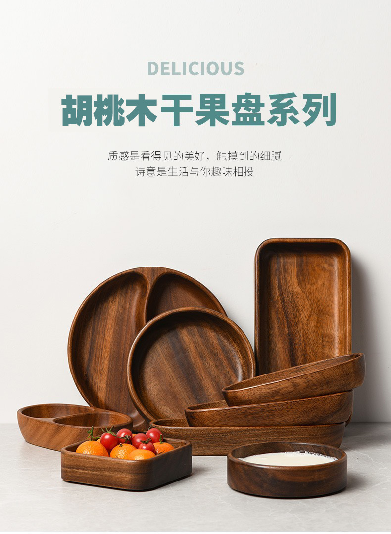 호두 과일 플레이트 단단한 나무 과일 플레이트 말린 과일 스낵 플레이트 거실 샐러드 그릇 나무 분지 대형 디너 플레이트 차 세트 도매