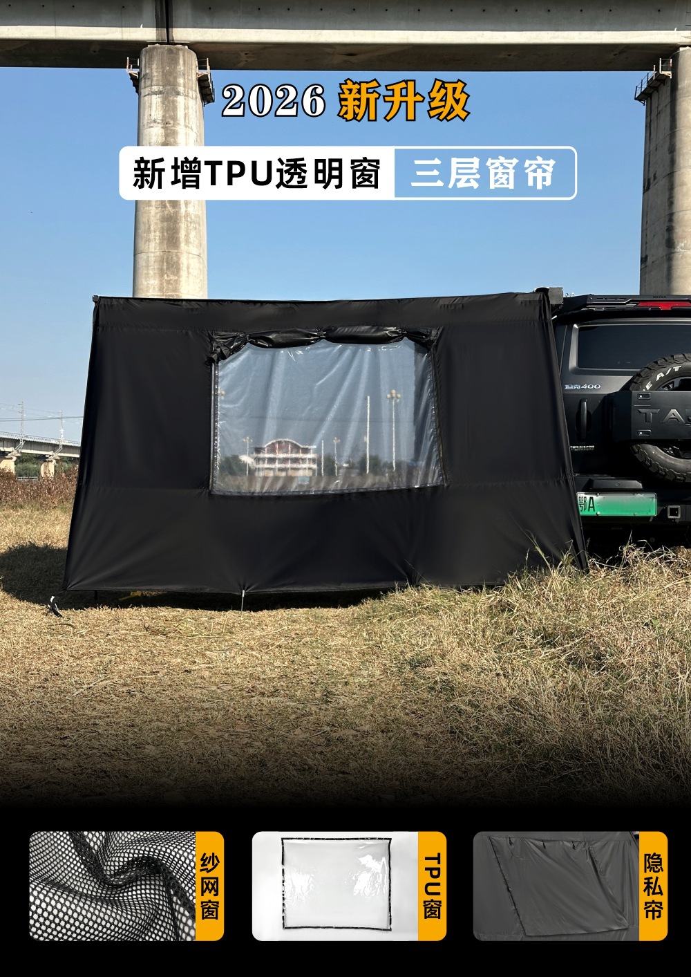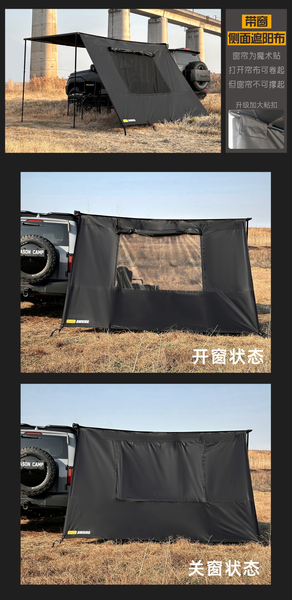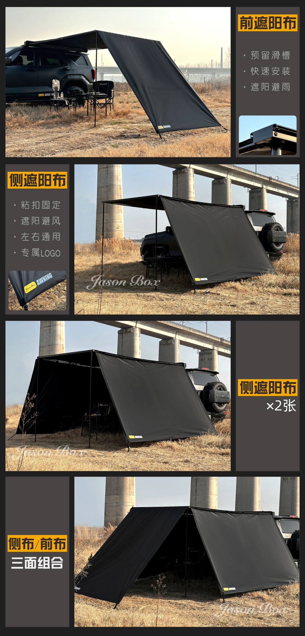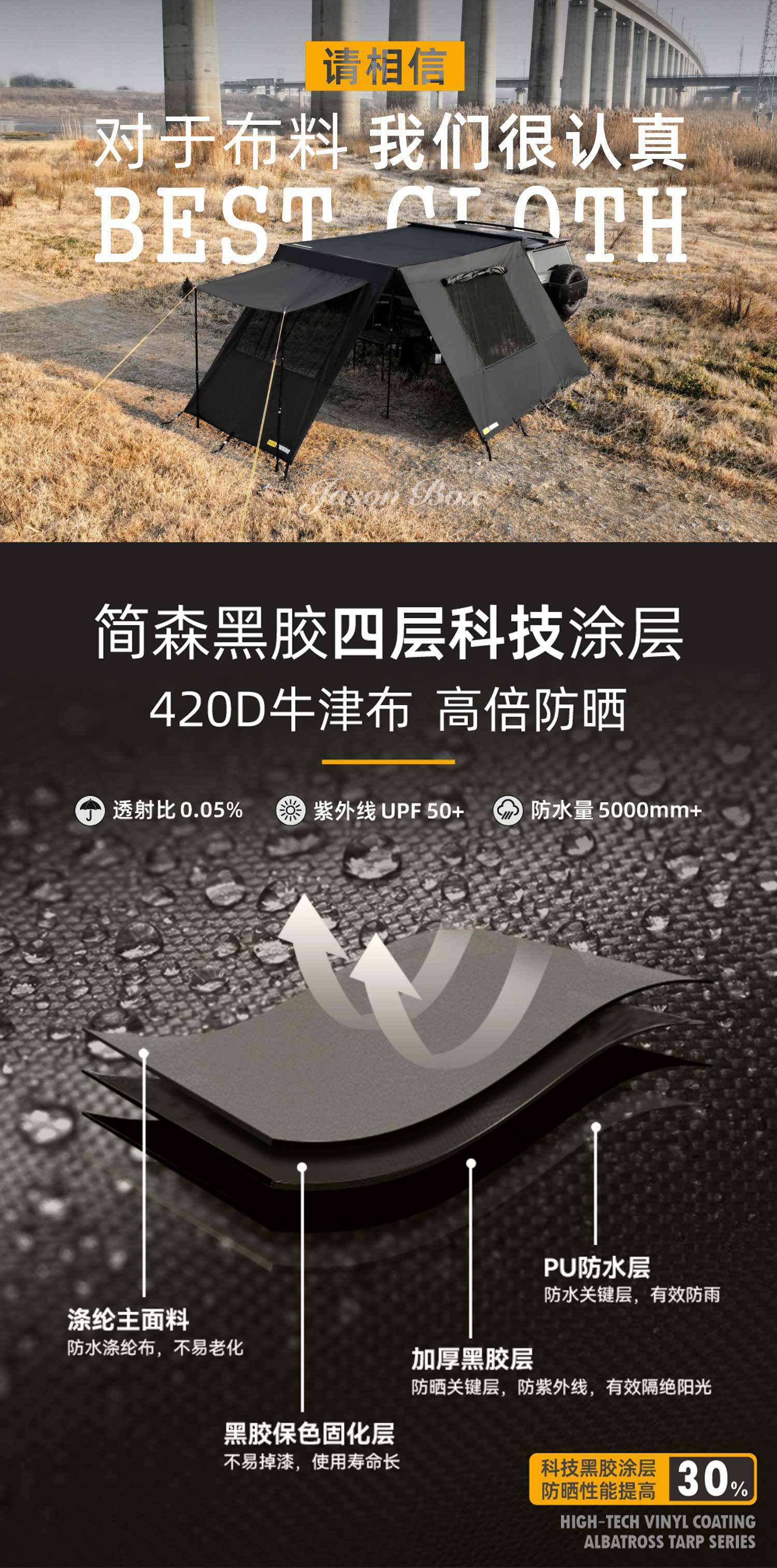 Jensen 야외 자동차 측면 텐트 블랙 접착제 창 화면 그물 확장 룸 자동차 방비 캠핑 블랙 사이드 그늘 천