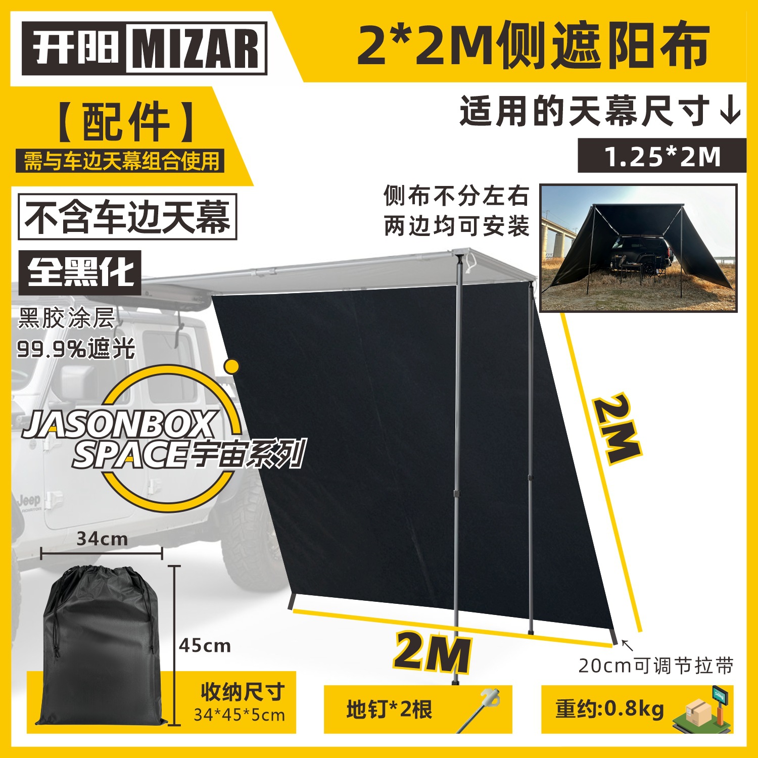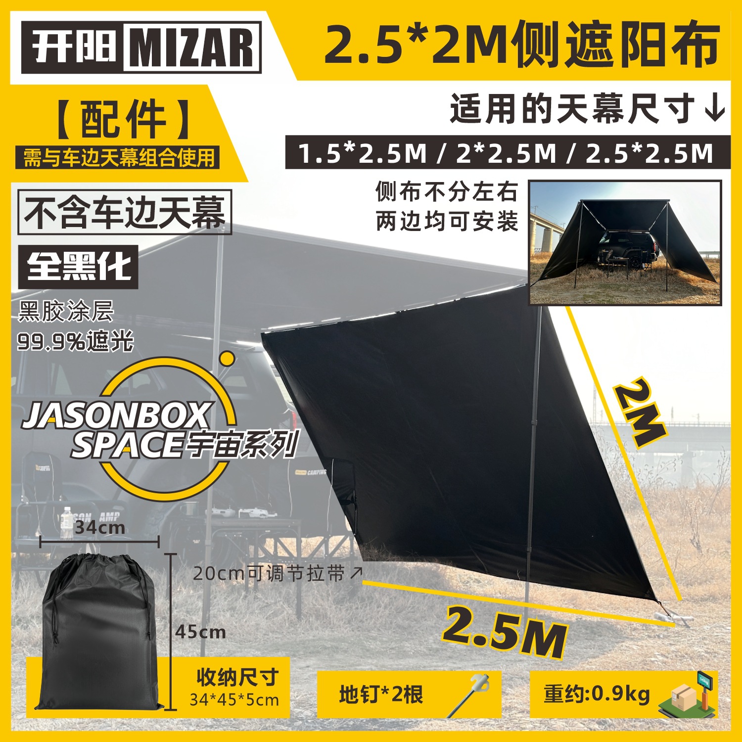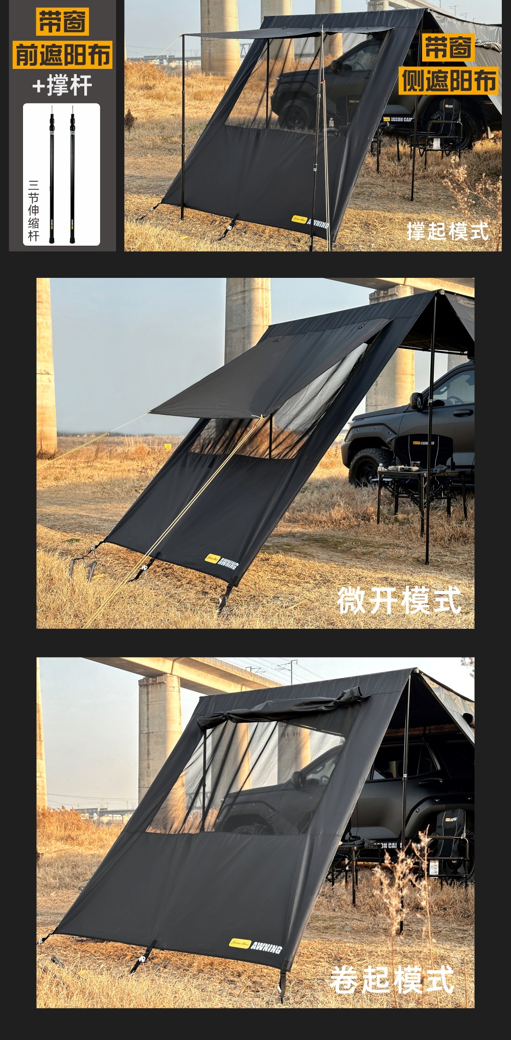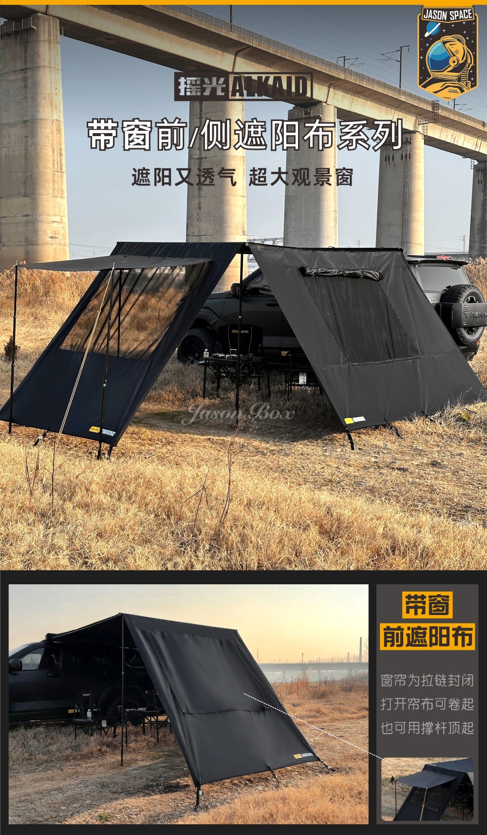 Jensen 야외 자동차 측면 텐트 블랙 접착제 창 화면 그물 확장 룸 자동차 방비 캠핑 블랙 사이드 그늘 천