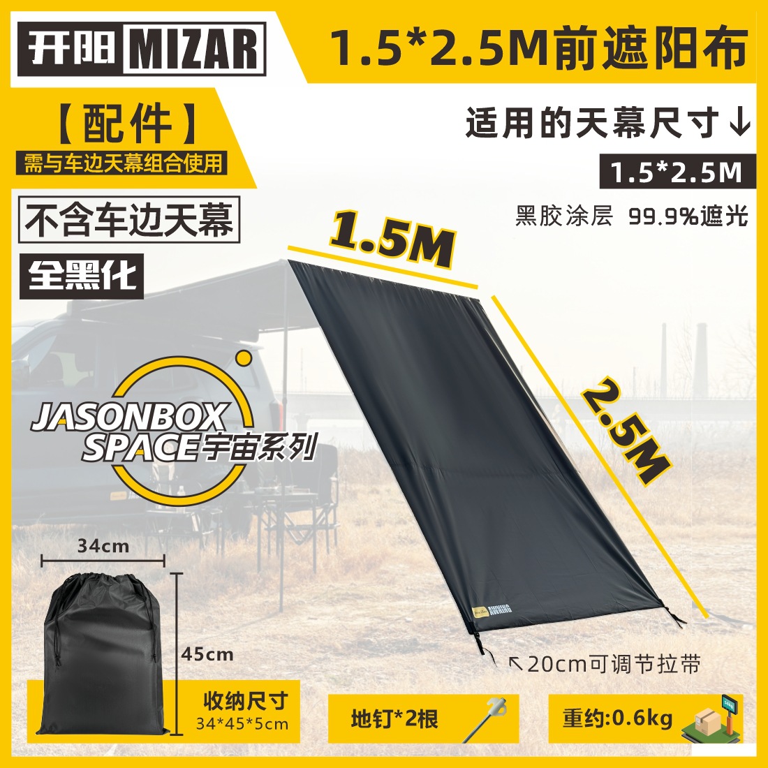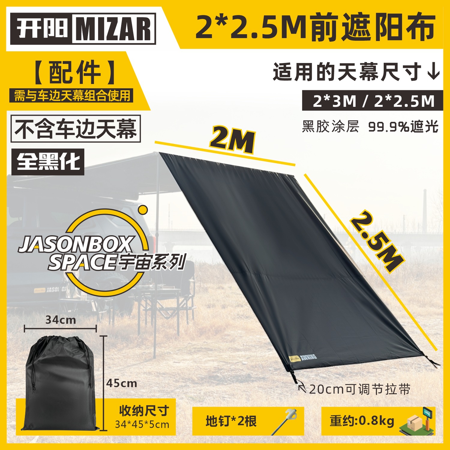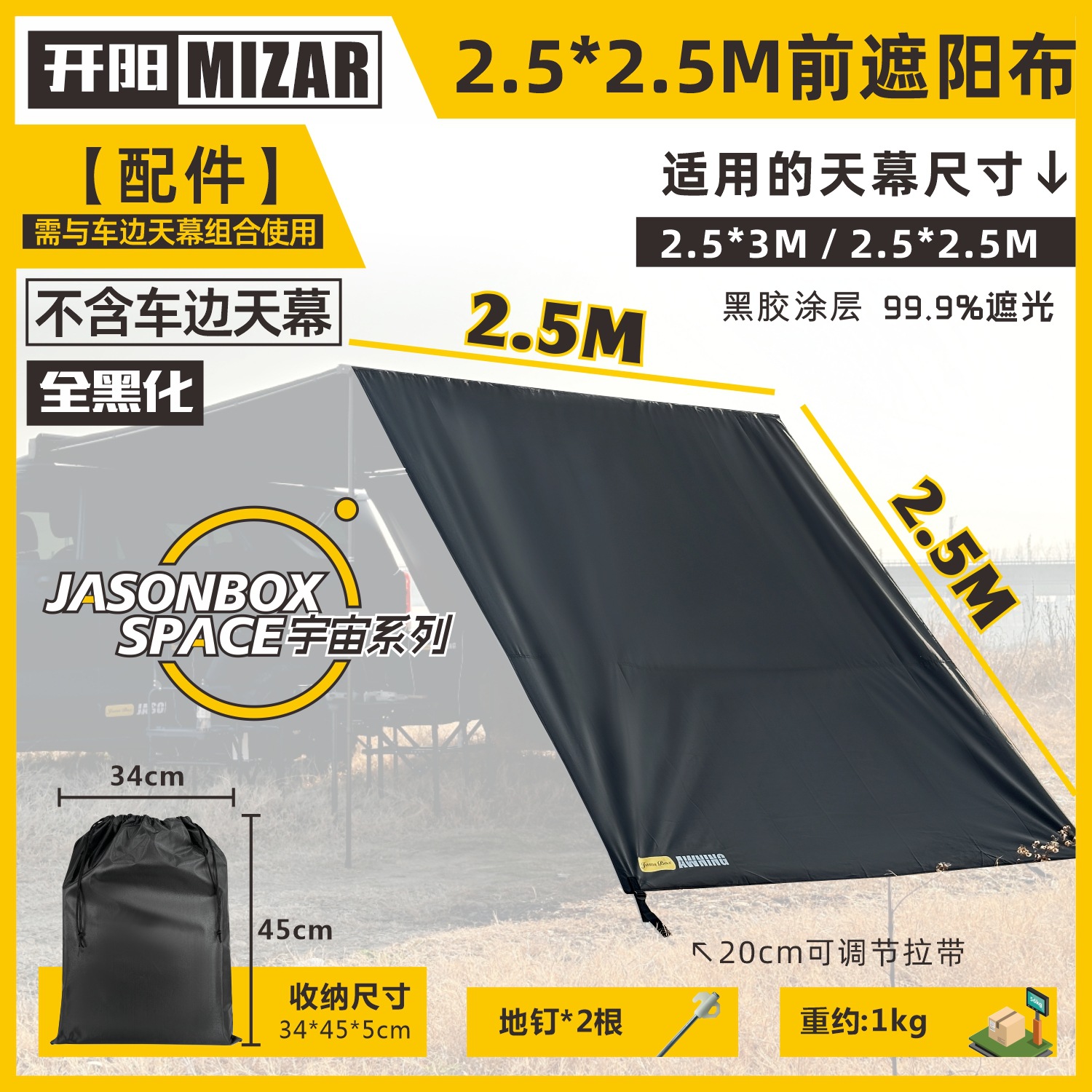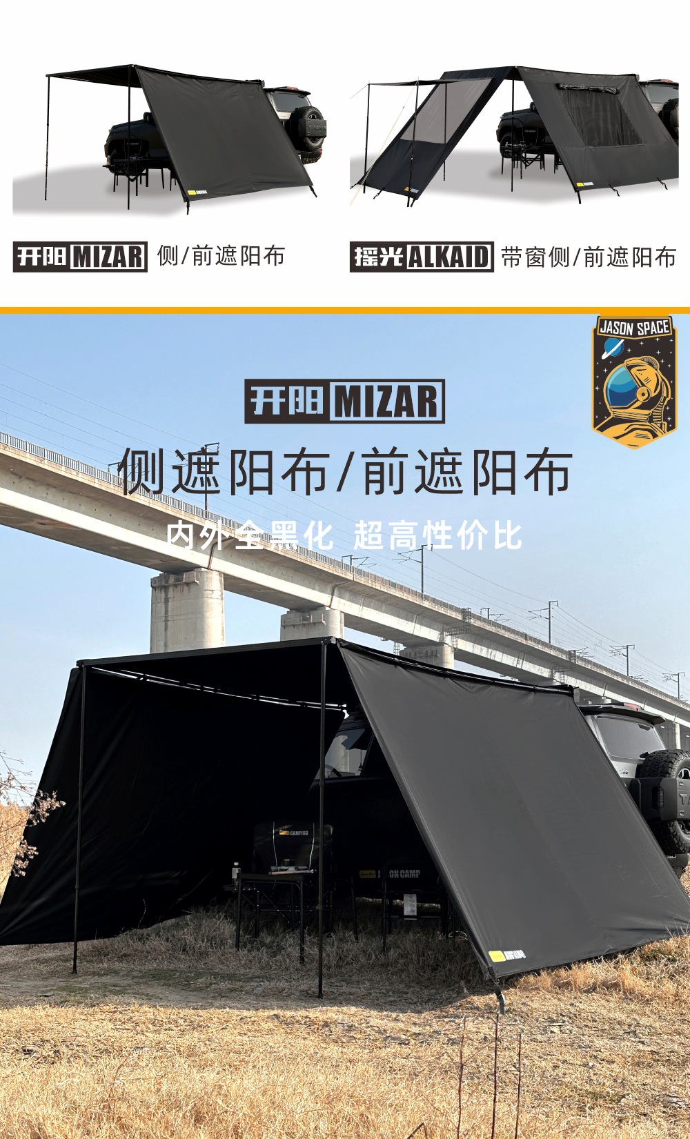 Jensen 야외 자동차 측면 텐트 블랙 접착제 창 화면 그물 확장 룸 자동차 방비 캠핑 블랙 사이드 그늘 천
