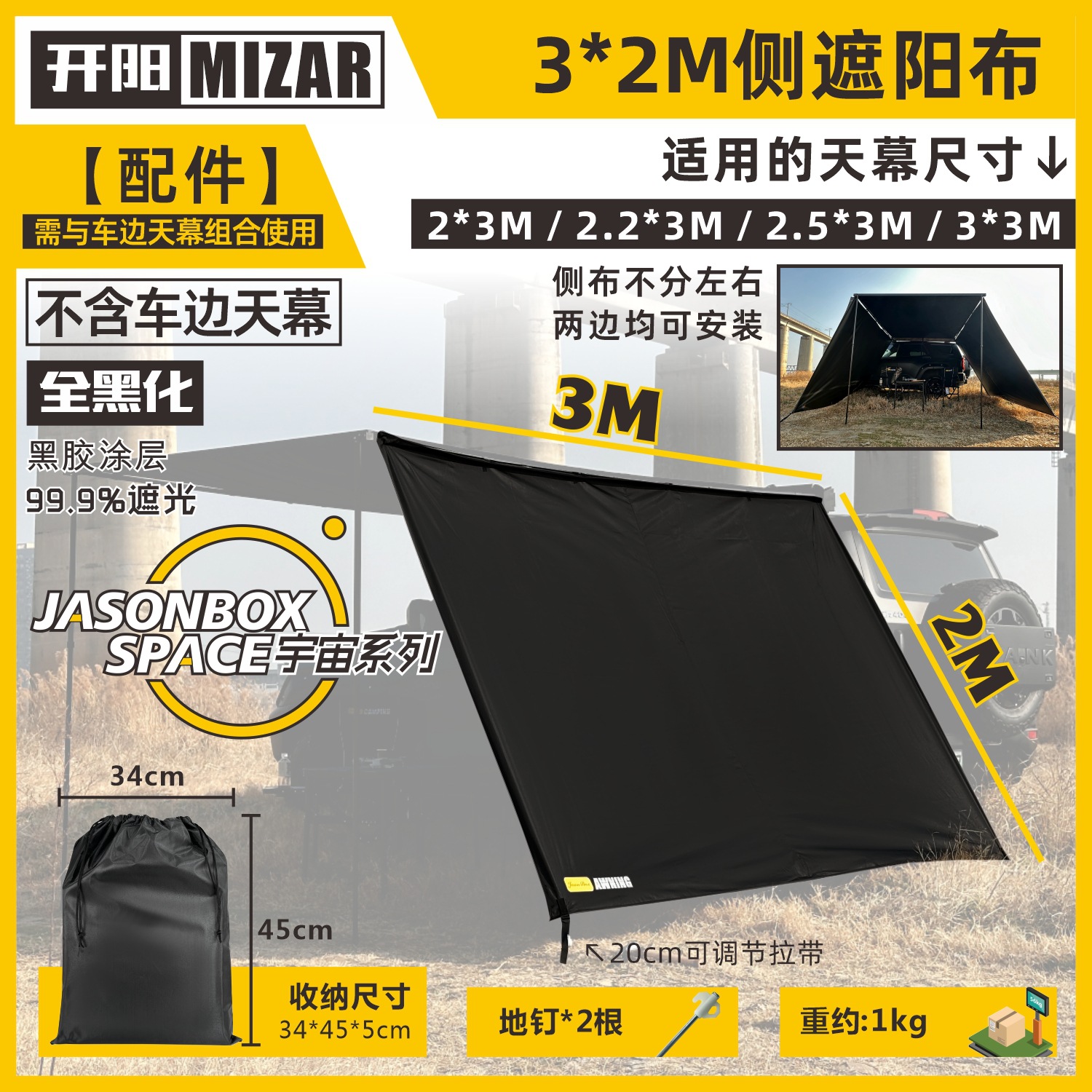 • [완전 흑화] 3*2M 측면 차양 천