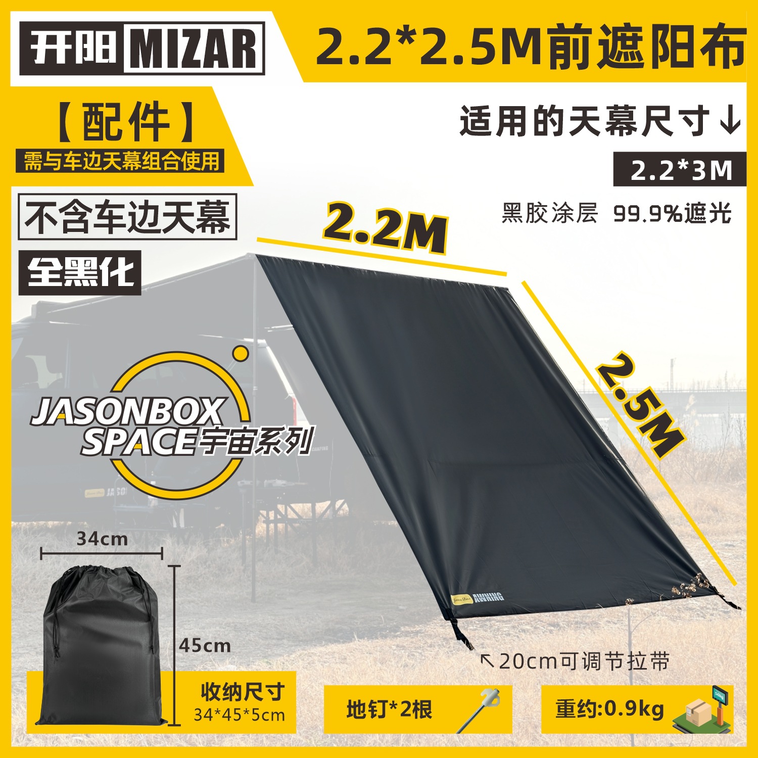 • [완전 검정색] 2*2.5M 전면 차양 천
