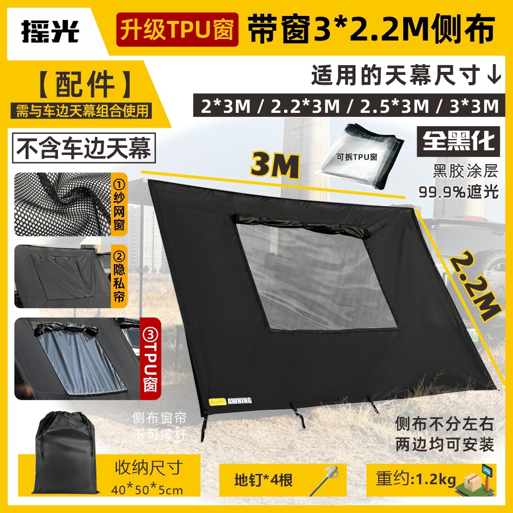 • [완전 블랙] 업그레이드 TPU 창문형 3*2.2M 측면 차광막