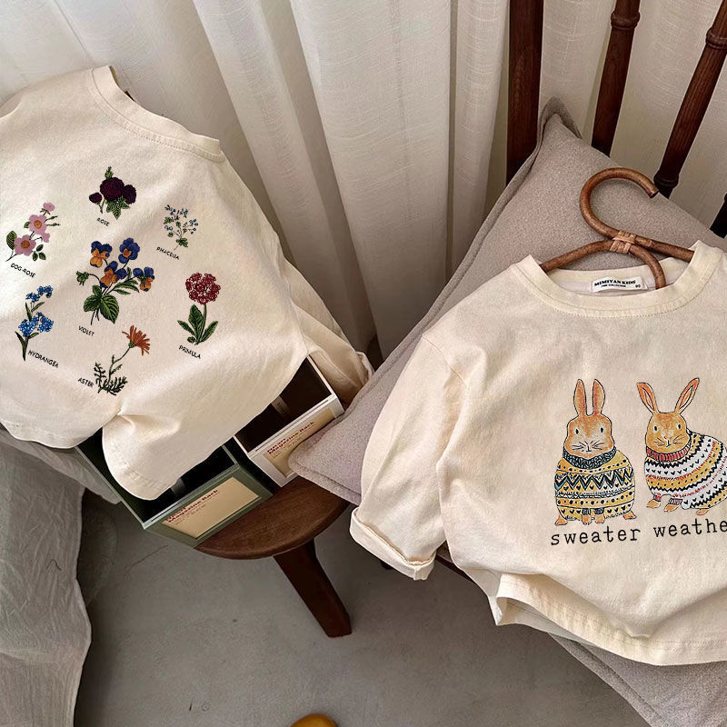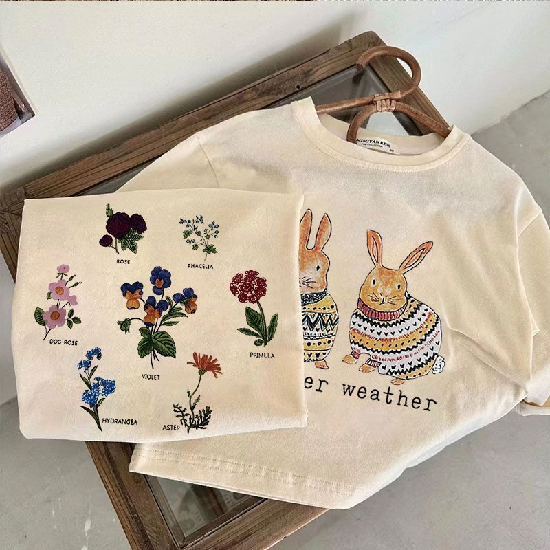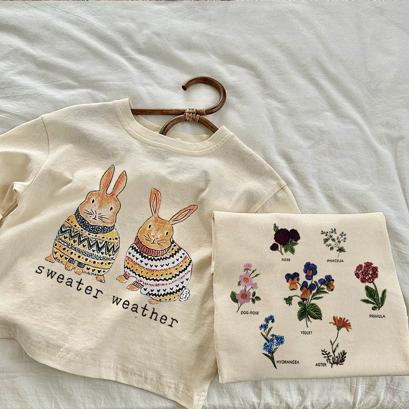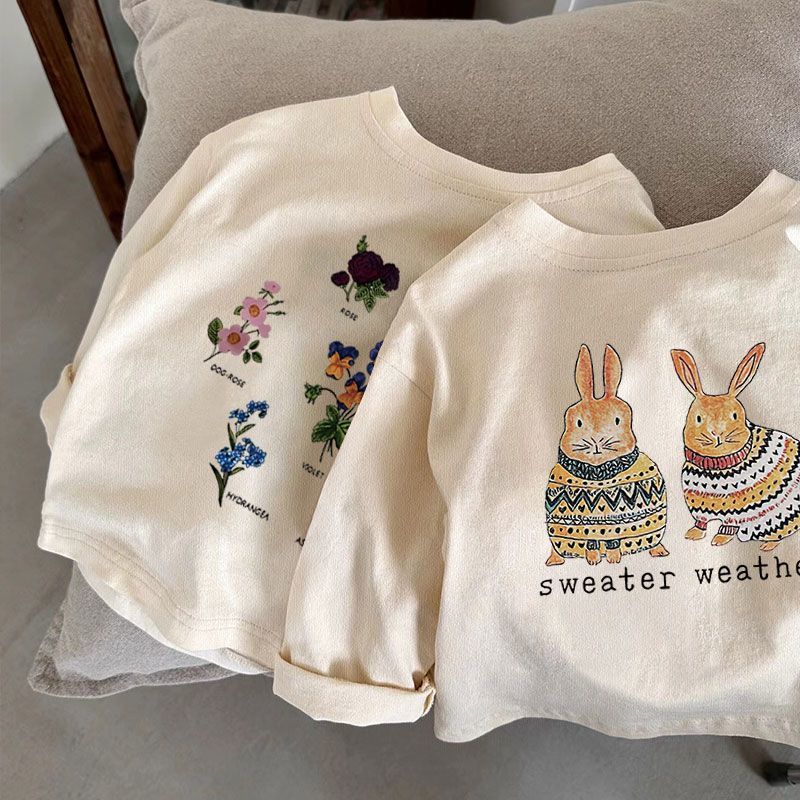 25가지 신상 아동복 순면 귀여운 캐주얼 여아 긴팔 베이비 상의 T 한국 스타일 토끼 프린트 티셔츠 이너웨어