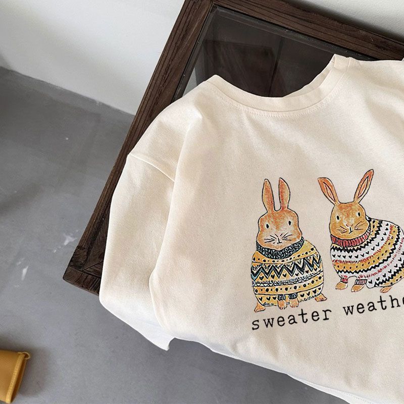 25가지 신상 아동복 순면 귀여운 캐주얼 여아 긴팔 베이비 상의 T 한국 스타일 토끼 프린트 티셔츠 이너웨어스토어 가기