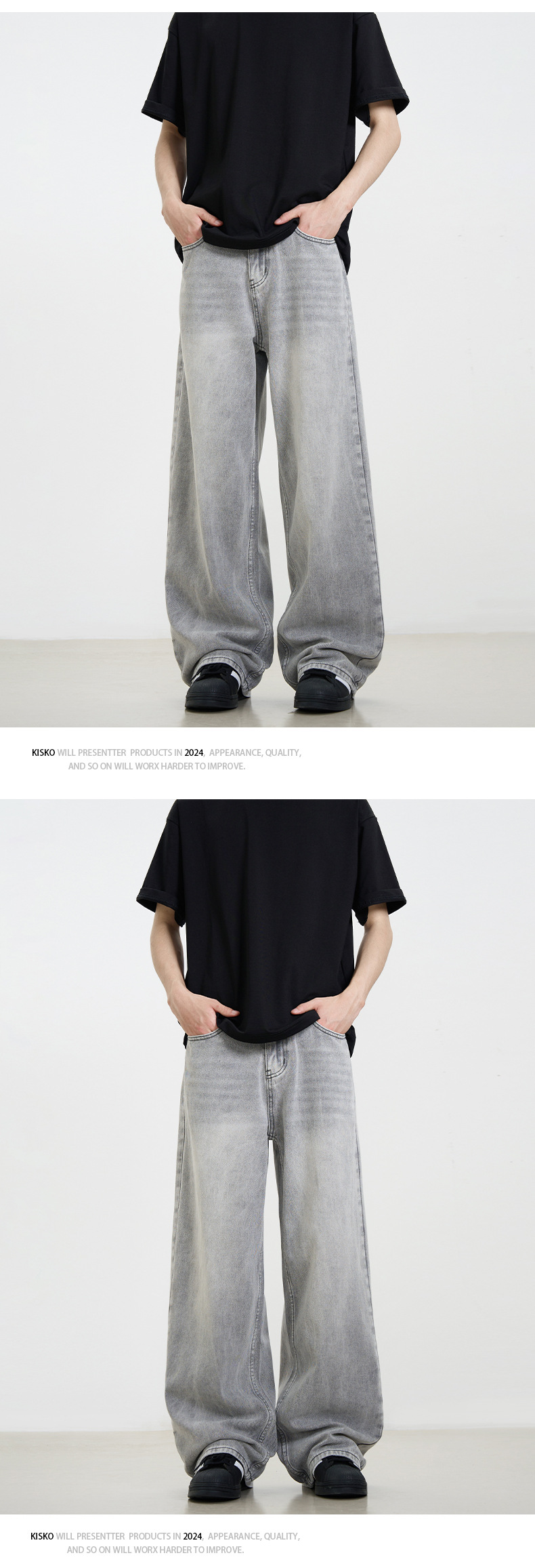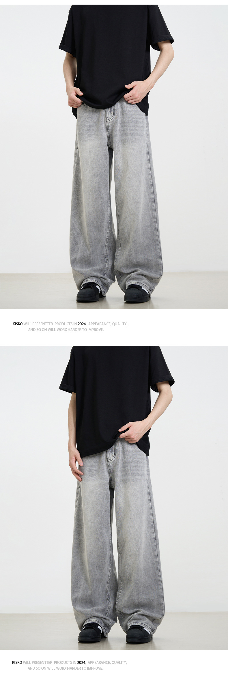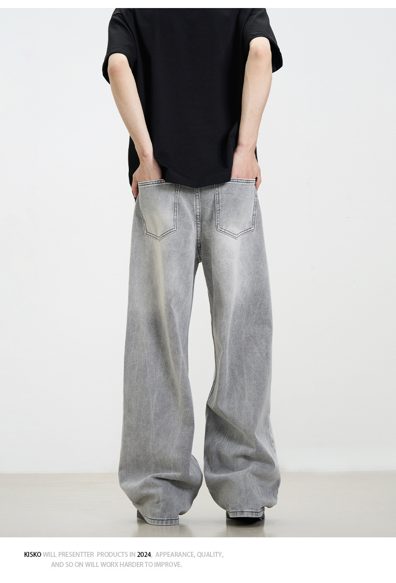 남성용 크로스보더 봄, 가을 복고풍 청바지 2025 봄, 가을 신상 트렌디 브랜드 루즈 스트레이트 캐주얼 와이드 레그 롱 팬츠스토어 가기