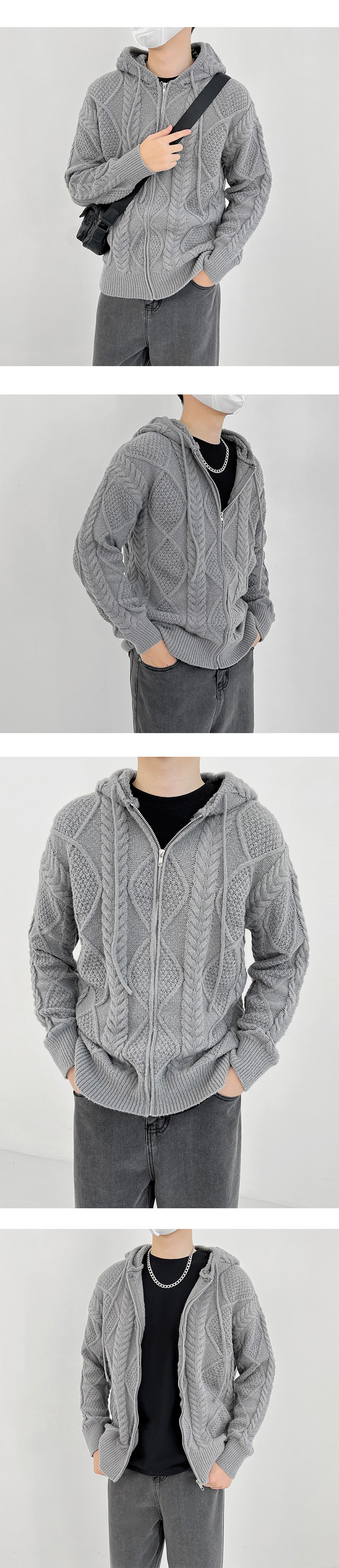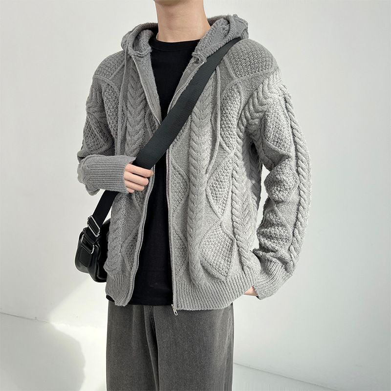 후드 스웨터 재킷 남자의 2024 새로운 느슨한 유행 카디건 니트 스웨터 가을과 겨울 강아지 잘 생긴 캐주얼 자켓스토어 가기