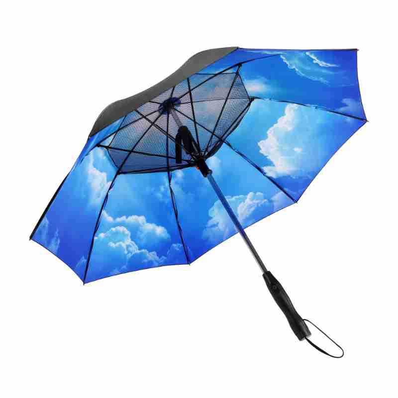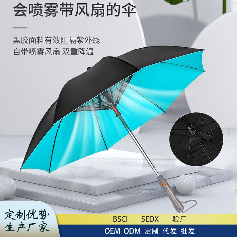 스프레이 기능이 있는 팬우산, 블랙 플라스틱 차양우산, 자외선 차단, 시원한 햇빛 차단 우산, 맞춤형 광고 로고 우산, 야외용스토어 가기