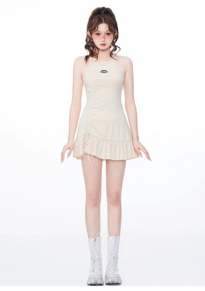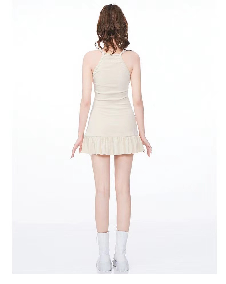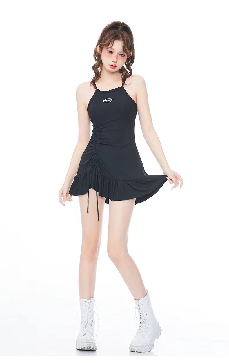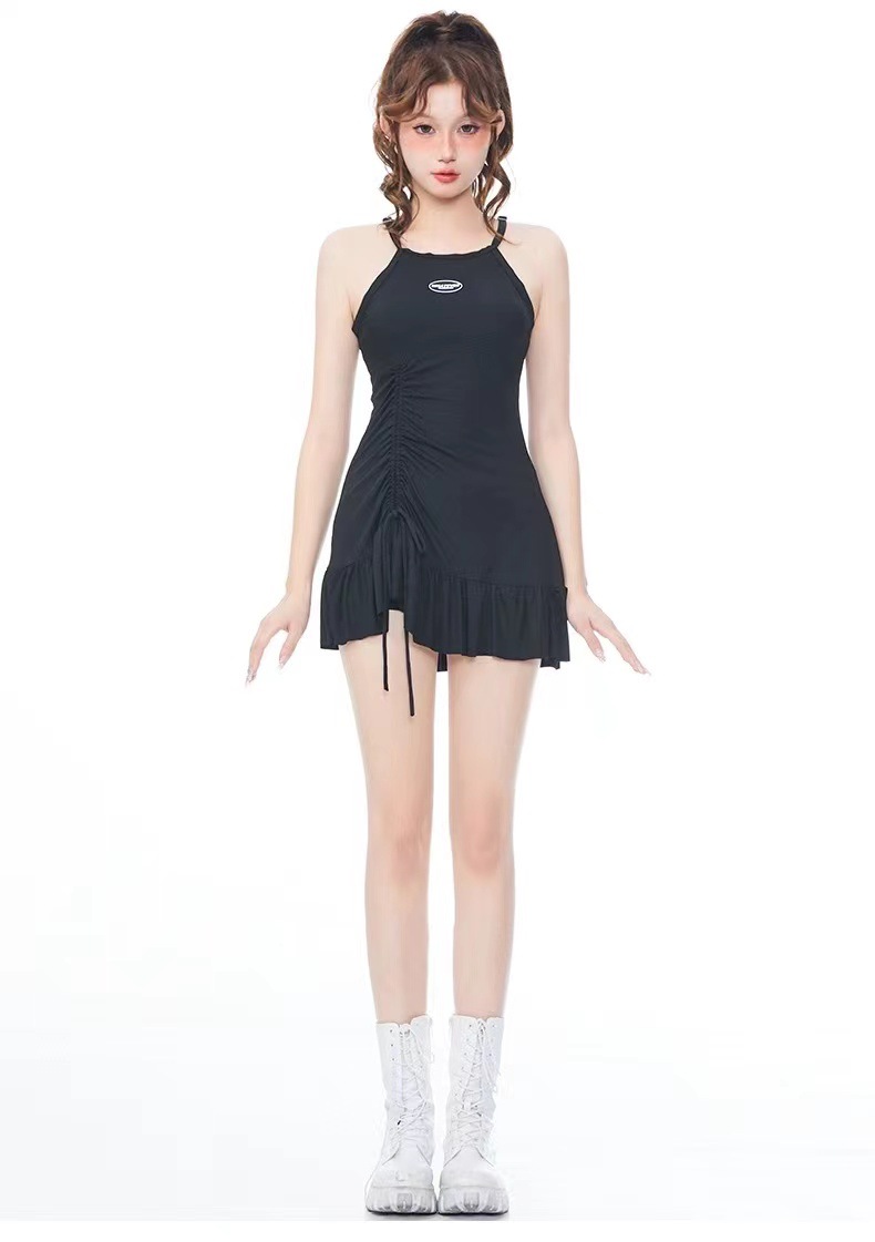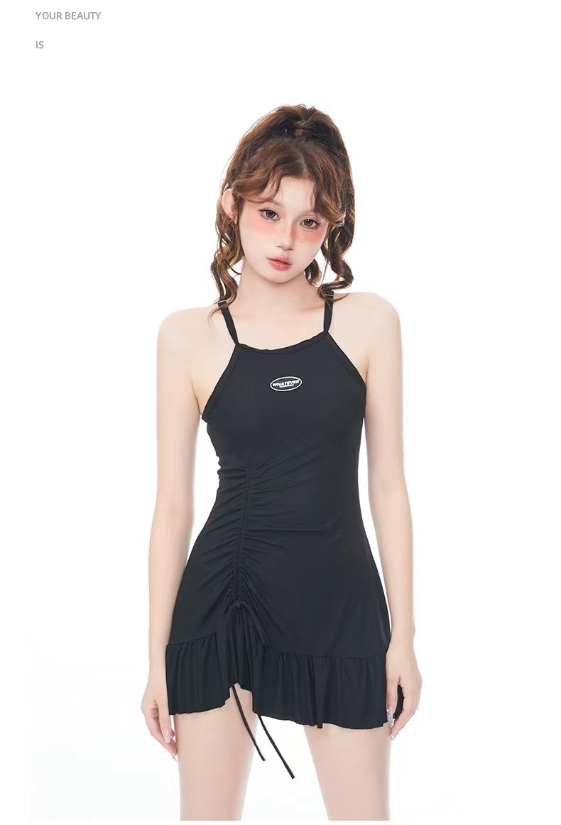 2024 새로운 치마 수영복 섹시한 원피스 보수적 소녀 단색 스트랩 배꼽 커버 얇은 온천 수영복 도매스토어 가기