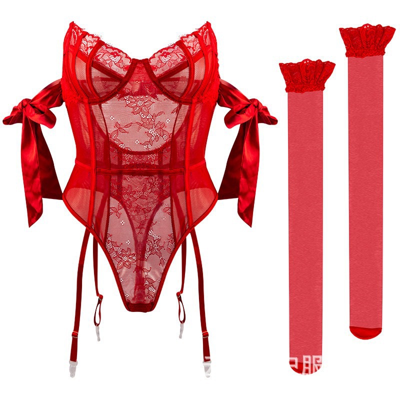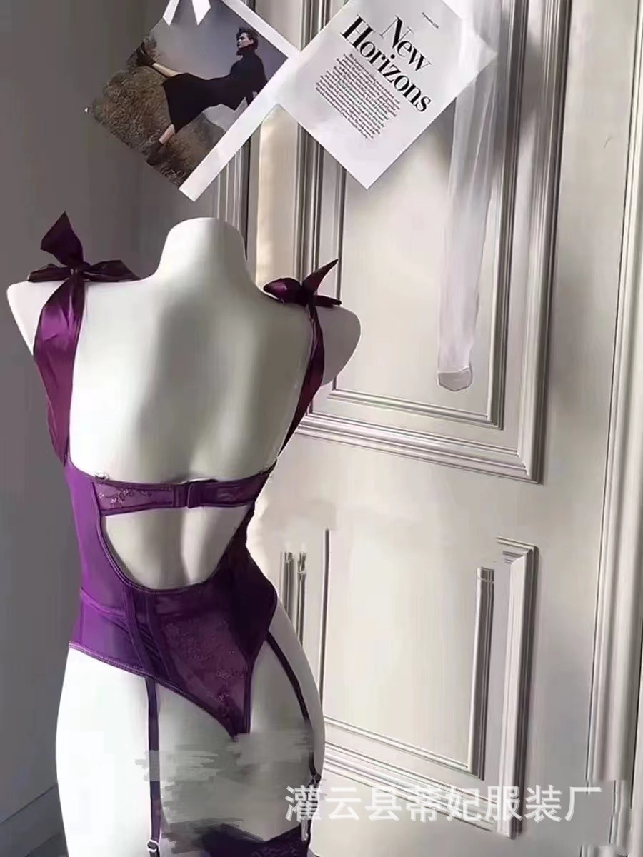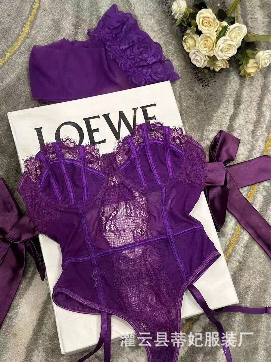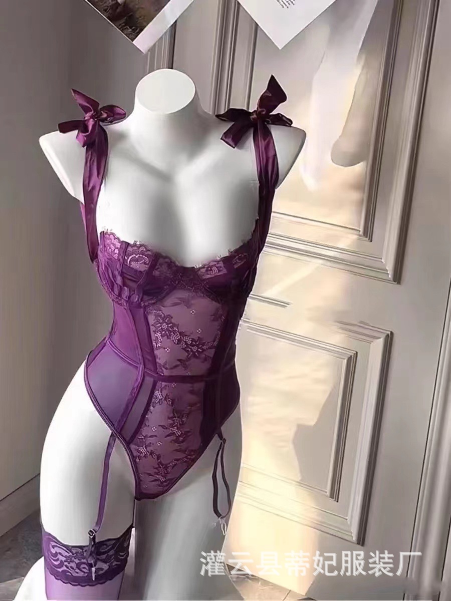 나이트 스웨어 티 페이 섹시한 란제리 퍼플 레이스 원피스 옷 순수 세트 유니폼 입고 파자마 유혹스토어 가기