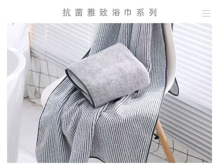 대나무 숯 섬유 목욕 타월 성인 부드러운 흡수제 빠른 건조 쉬운 머리 두꺼운 Gipsophila 줄무늬 흑백 남성과 여성을위한 단순스토어 가기